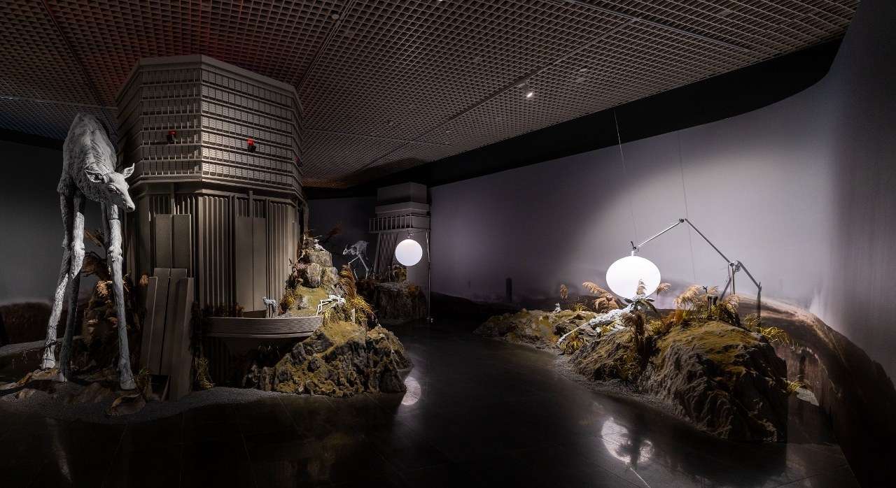 Inspired by the story of “Zobeide” from Italian author Italo Calvino’s novel Invisible Cities, artist Wong Weng Cheong created the apocalyptic prophecy of “Zobeide” using digital prints and large-scale installations: mutated creatures with elongated bodies wander among desolate ruins, creating a surreal sense of oppression and apocalyptic bleakness. With surveillance cameras installed in the exhibition, as the most compelling approach, members of the public are captured as part of the works at the moment when they enter the space. This shift transforms the viewers from being external “observers” to “those being observed”. Curator Chang Chan emphasised that this design echoes Foucault’s theory of “dystopia”, which explores the established understanding of “belonging” through the interweaving of reality and illusion.