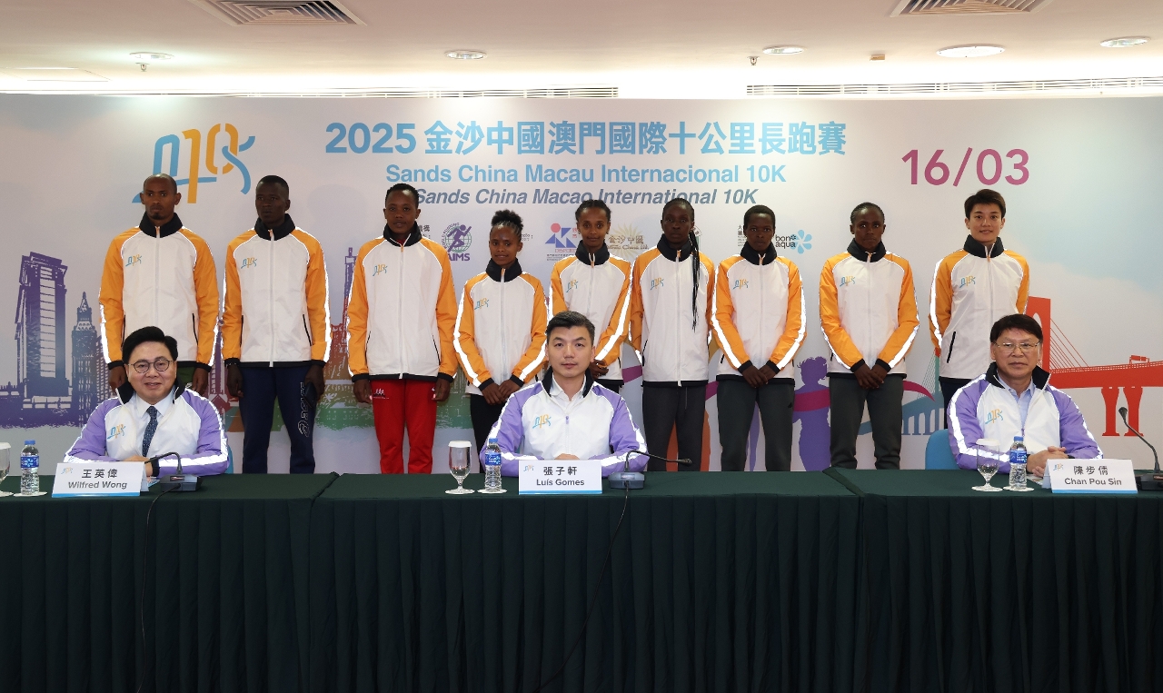 Organized by the Sports Bureau, Sands China Ltd., and the General Association of Athletics of Macau (AGAM), the 2025 Sands China Macao International 10K will take place on 16 March (Sunday). The Organizing Committee held a pre-event press conference today (14 March) to introduce the competition details and relevant information.