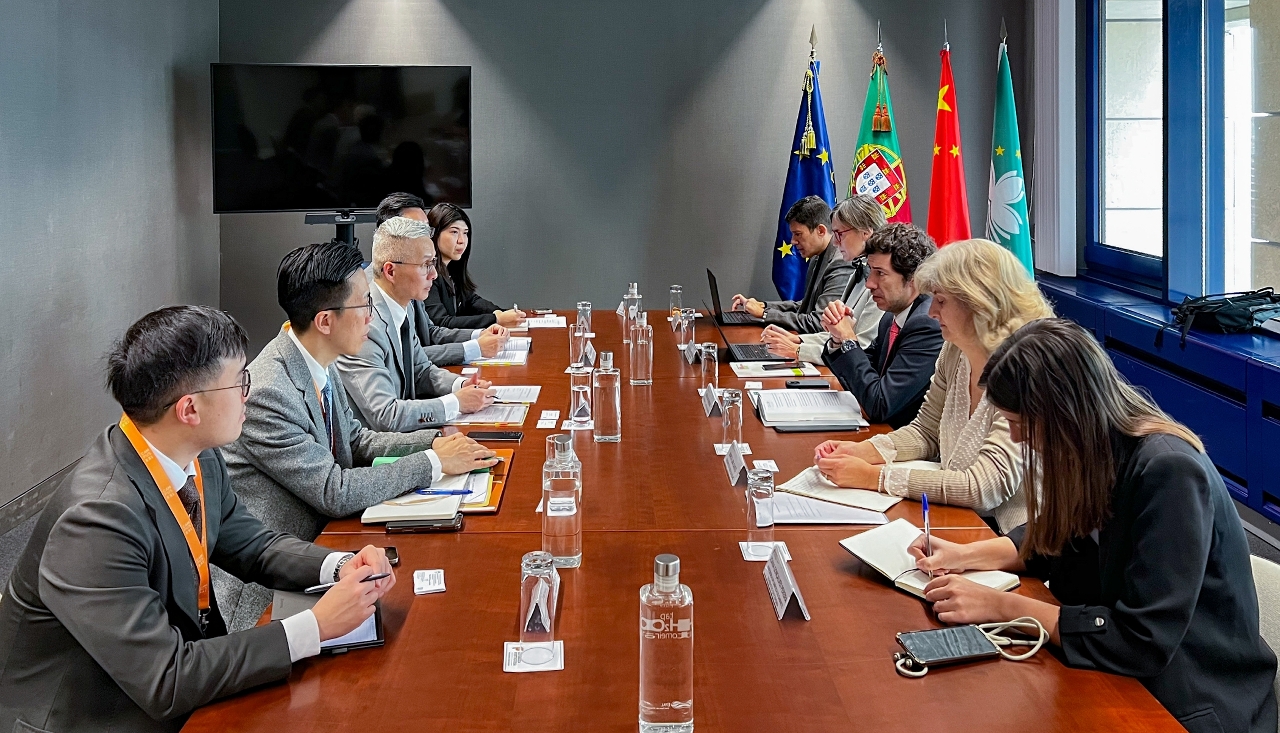 The delegation also included the Director of the Economic and Technological Development Bureau, Mr. Yau Yun Wah; the Director of the Macao Government Tourism Office, Ms. Maria Helena de Senna Fernandes; the President of the Administrative Committee of the Science and Technology Development Fund, Mr. Che Weng Keong; the Director of the Macao Economic and Trade Office in Lisbon, Ms. Lúcia Abrantes dos Santos; and Advisor at the Office of the Secretary for Economy and Finance, Mr. Tam Chi Neng, among others.