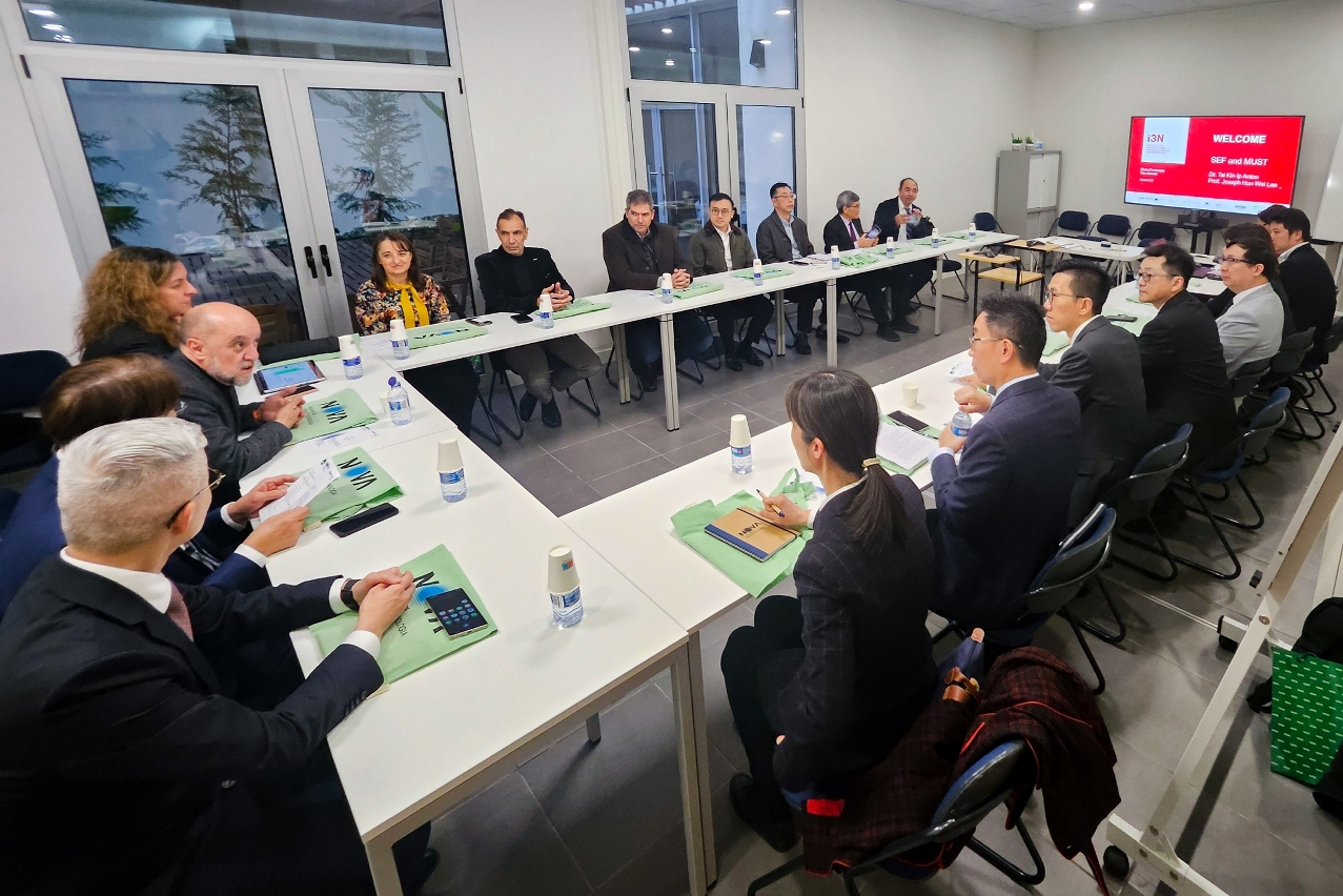 During the visit to Portugal, the delegation also met with the Chinese Ambassador to Portugal, Mr. Zhao Bentang, to discuss deepening cooperation between Macao and Portugal. In addition, the delegation attended the inauguration ceremony of the China-Portugal Joint Laboratory on Artificial Intelligence and Public Health Technologies, which was jointly established by tertiary institutions from Macao, Guangzhou, and Portugal. Furthermore, the delegation visited the Universidade Católica Portuguesa, the NOVA University Lisbon, and the Institute for Nanostructures, Nanomodelling, and Nanofabrication (i3N) to learn about the latest development of scientific research in Portugal. During the visit, the delegation witnessed the signing of a memorandum of understanding between the Macau University of Science and Technology and the NOVA University Lisbon to strengthen research collaboration and personnel exchanges, as well as the signing of a cooperation agreement between the faculties of the two institutions to establish a joint research centre. The development of the Centre for Science and Technology Exchange and Cooperation between China and Portuguese-Speaking Countries is enhanced through promoting more exchanges and industry-academia-research collaboration between relevant institutions of the two places.