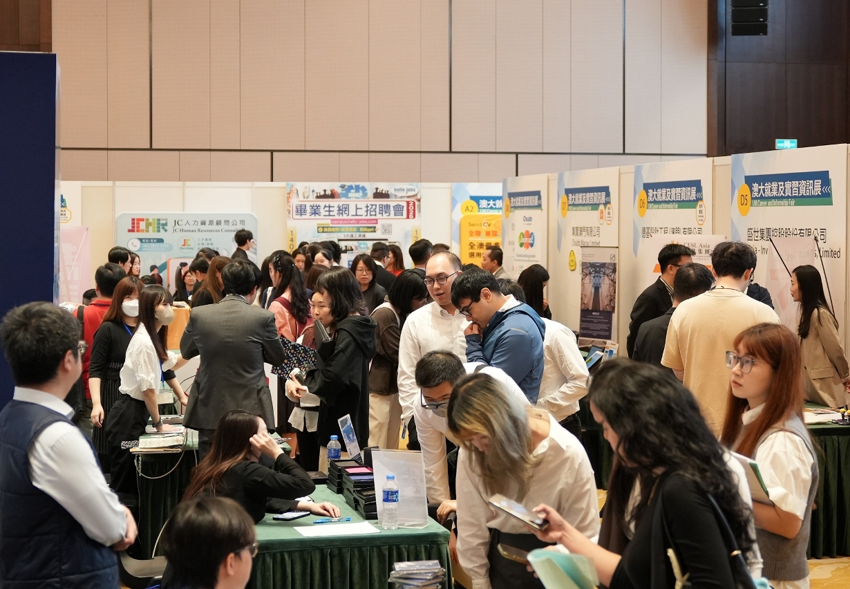 The University of Macau (UM) held the Career and Internship Fair 2025 today (26 March). More than 110 companies and organisations from different sectors in Macao and other cities in the Guangdong-Hong Kong-Macao Greater Bay Area participated in the fair, offering over 3,000 job opportunities. The university also organised a series of career guidance activities to help graduating students find jobs.