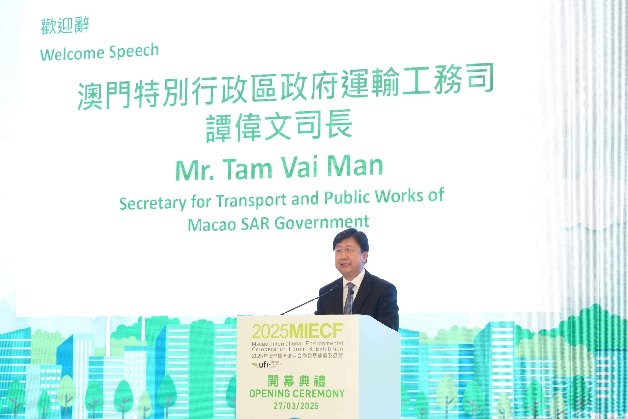 The Macao SAR Government is hosting the 2025 Macao International Environmental Co-operation Forum & Exhibition (2025MIECF), a three-day event that kicked off today (27 March) at Cotai Expo, The Venetian Macao. This year’s exhibition, themed “Innovation and Green Development – Solutions to Build Beautiful Cities”, encompasses 12,000 square metres with five exhibition zones, drawing exhibitors, traders, and delegations from nearly 40 countries and regions. To further enhance the international reach and professional standards of the exhibition, a total of twelve concurrent events will be held. On the second day of the event, three Green Forum sessions will be arranged, focusing on topics including green transition, technological innovation, and environmental exchanges and co-operation in the Pan-Pearl River Delta (Pan-PRD) region. In addition, Mr. Gino Van Begin, Secretary General of ICLEI – Local Governments for Sustainability, a globally renowned city network, was invited to deliver a keynote speech at the 2025MIECF.