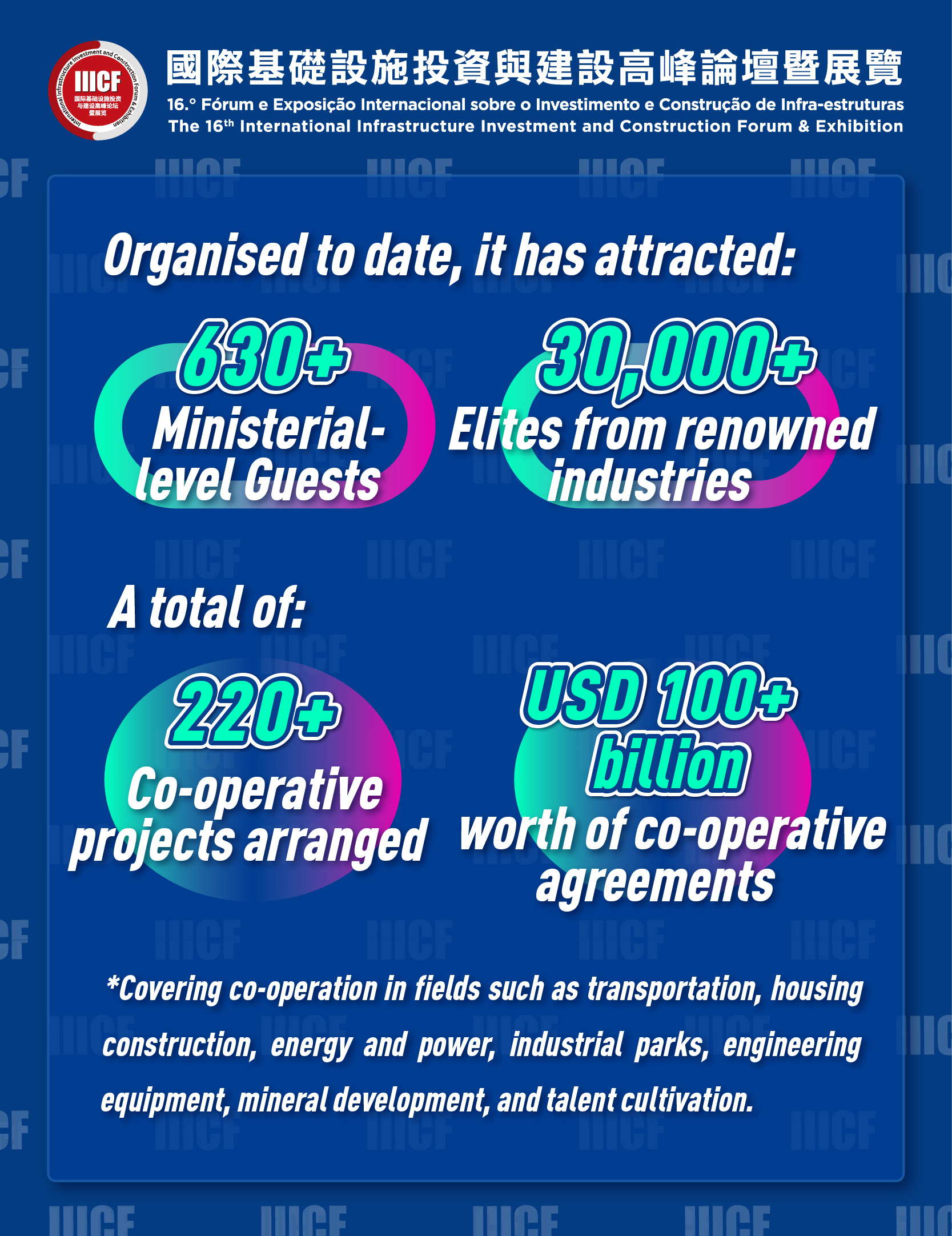 With 15 successful editions to date, IIICF has made sustained efforts to magnify its brand impact through diversified forum themes and an ever-expanding scale. As a result, it has become one of the annual industry gatherings with the highest standards, largest scale, and greatest impact in global infrastructure co-operation, serving as a vital platform for the “Belt and Road” Initiative.