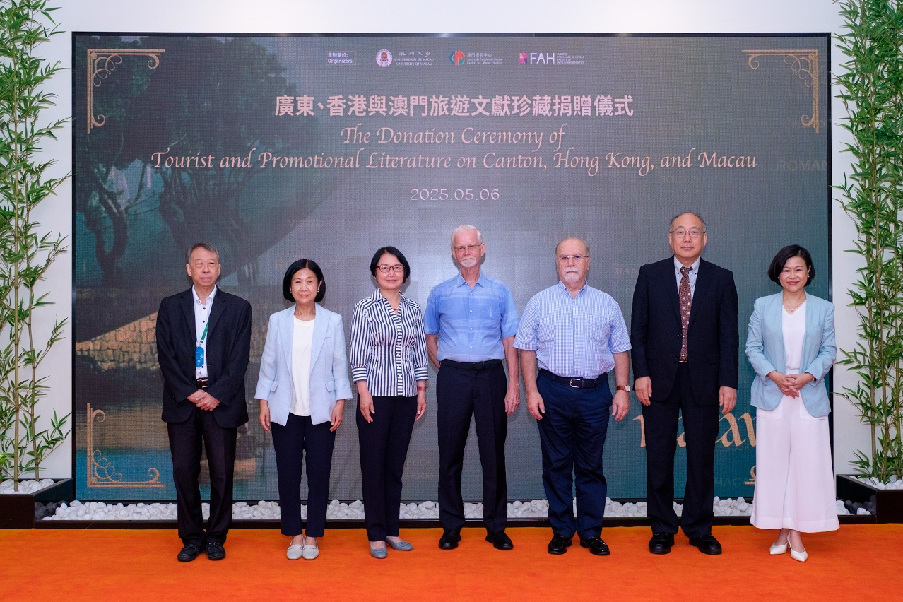 The Centre for Macau Studies (CMS) and the Department of History of the Faculty of Arts and Humanities (FAH) of the University of Macau (UM) jointly held the First Symposium on the ‘Intersecting Histories of the Greater Bay Area (1820–1940)’ and the Donation Ceremony of Tourist and Promotional Literature on Canton, Hong Kong, and Macau. The event brought together scholars and researchers from mainland China, Hong Kong, and Macao to discuss the history and development of the Guangdong-Hong Kong-Macao Greater Bay Area through academic exchange and the sharing of archival resources.