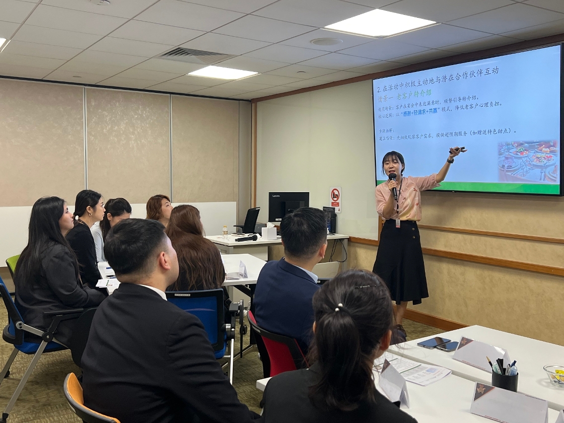 During the course, Ma explained the communication styles and etiquette on mainland social media platforms, including the use of emojis and festival greetings. Li led a session on ‘how to exchange greetings with mainland customers’ and held an interactive Q&A session to address the challenges participants had encountered. Xie incorporated geographical, social, and historical factors to help participants gain a deeper understanding of the mainland mindset. In the final session, ‘mock business negotiation’, participants worked in groups to role-play different scenarios. Their fluency in Mandarin and effective use of body language demonstrated the progress they had made.