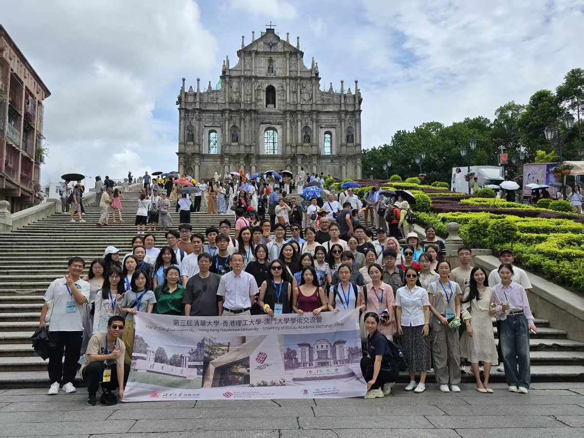 The exchange camp featured a diverse array of activities. Li Jun, head of the Department of Arts and Design in FAH, gave a lecture on Macao’s cultural history, with commentary by Lin Shaoyang, Distinguished Professor in the Department of History in FAH. In another lecture, Zhang Yan, director of the Centre for Chinese History and Culture at UM, demonstrated ‘cunfa’, a brush technique in Chinese landscape painting, enabling participants to appreciate the charm of ink art. Four parallel academic seminars were held, where students and faculty from Tsinghua University, UM, and PolyU presented over 120 research reports on literature, history, and philosophy. In addition, the participants conducted field visits to historical landmarks in Macao, such as the Ruins of St. Paul’s and Mandarin’s House.