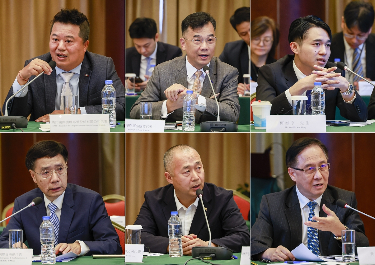 The meeting attendees include Chief of Office of the Secretary for Economy and Finance, Lo Chi Fai, official representatives of the following governmental entities including Secretariat for Economy and Finance, Secretariat for Transport and Public Works, Macao Customs Service, Macao University of Tourism, Cultural Affairs Bureau, Labour Affairs Bureau, Economic and Technological Development Bureau, Macao Commerce and Investment Promotion Institute, Municipal Affairs Bureau, Civil Aviation Authority and Consumer Council, along with representatives of Macao Light Rapid Transit Corporation, Limited, the integrated resort enterprises as well as the tourism and other related sectors.