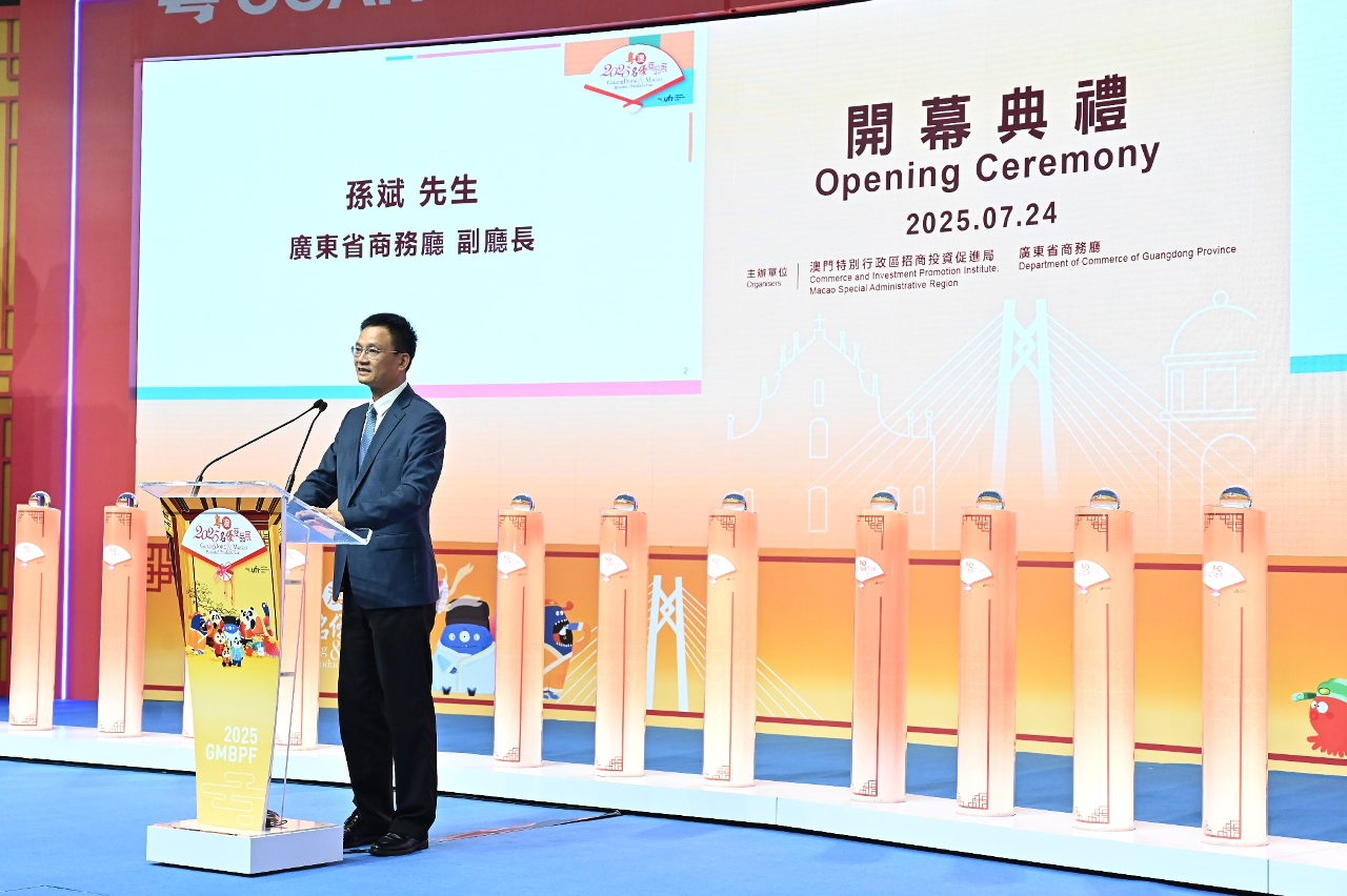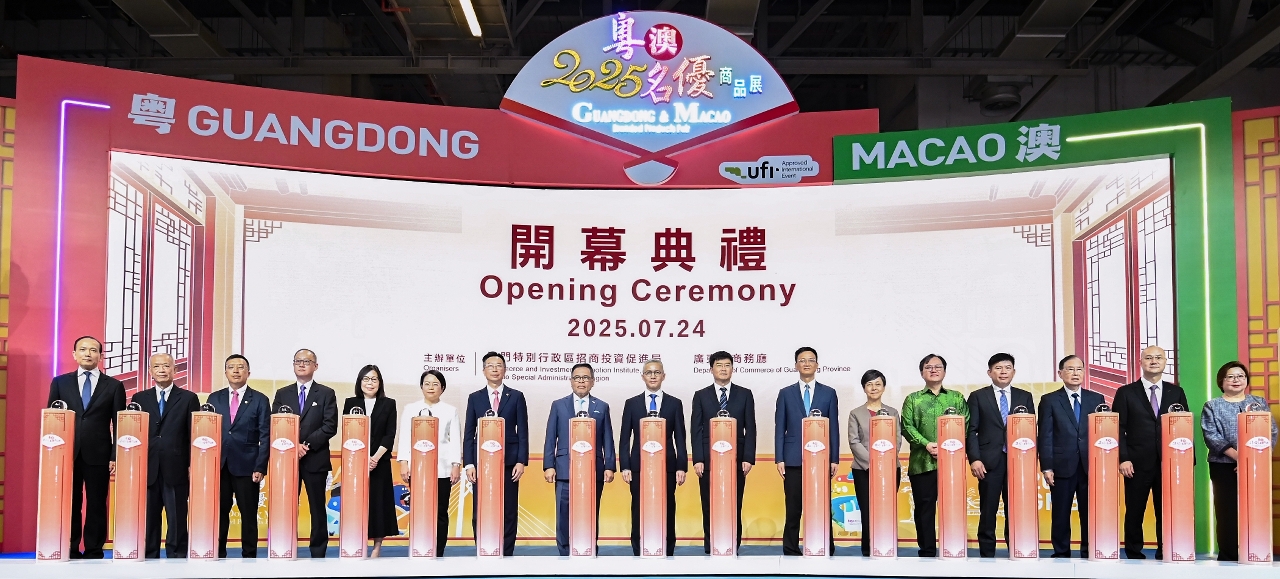 The 2025 Guangdong & Macao Branded Products Fair (2025GMBPF), jointly organised by the Commerce and Investment Promotion Institute (IPIM) of the Macao Special Administrative Region and the Department of Commerce of Guangdong Province, officially opened on 24 July.