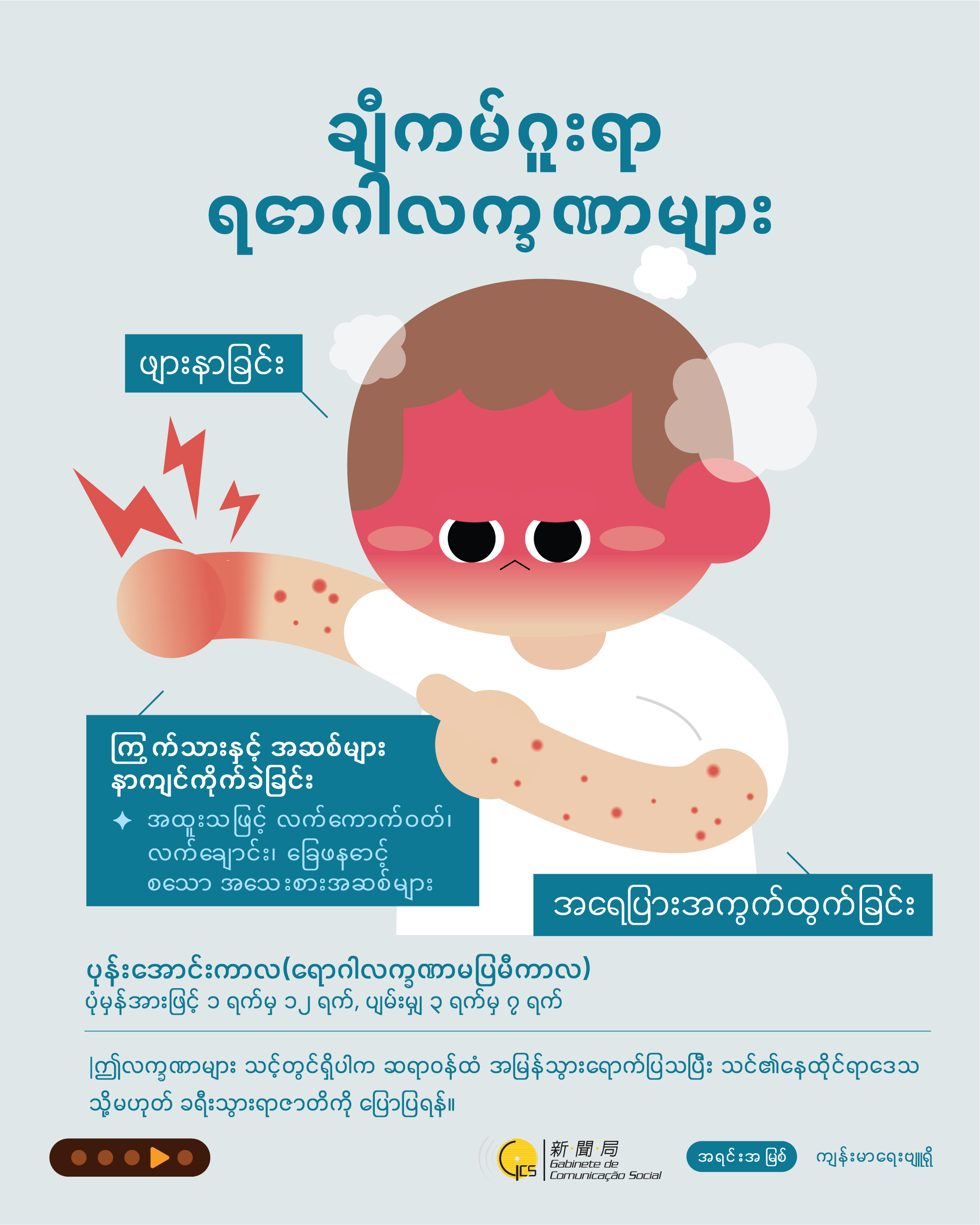 【Infographic | Burmese】Guard against chikungunya fever: Be aware of signs and symptoms, follow the “3 Tips for Mosquito Prevention”