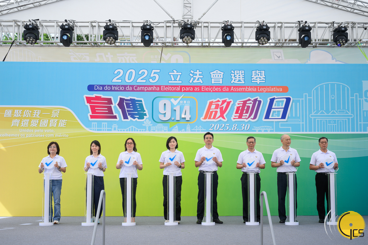 The Electoral Affairs Commission hosted today the “Launch Day for Campaigning of the Legislative Assembly Election 2025” event, at Tap Seac Square. The ceremony was officiated by Mr Seng; the Commissioner Against Corruption (CCAC), Ms Ao Ieong Seong; the other five members of the Electoral Affairs Commission; and the Director of the Macao Post and Telecommunications Bureau, Ms Lau Wai Meng.