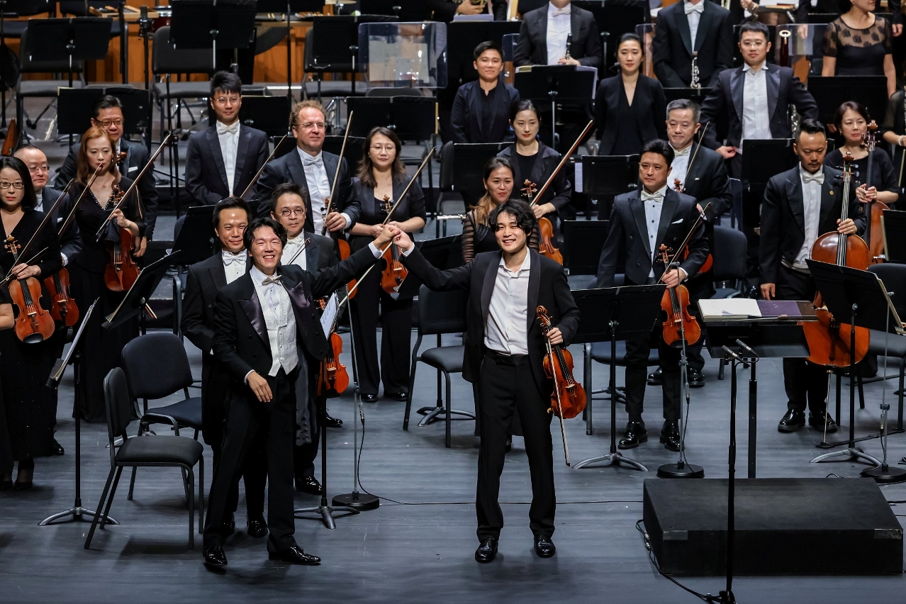 The Macao Orchestra 2025–26 Season Opening Concert “Inmo Yang and the Macao Orchestra” was held on 6 September at the Macao Cultural Centre Grand Auditorium. Under the baton of the Music Director and Principal Conductor of the Macao Orchestra Lio Kuokman, the acclaimed Korean violinist Inmo Yang was invited to perform Mendelssohn’s Violin Concerto, showcasing his exquisite virtuosity and kicking off the new Concert Season. The opening ceremony was attended by the President of the Cultural Affairs Bureau and President of Board of Directors of Macao Orchestra Company, Limited, Leong Wai Man; the Member of Board of Directors of Macao Orchestra Company, Limited, Jimson Hoi; the Deputy General Manager of Banking Center of Bank of China Macau Branch, Chao Weng Hou; the Executive Director of Macao Orchestra Company, Limited, Lo Sek Ieong; and the Music Director and Principal Conductor of the Macao Orchestra, Lio Kuokman.