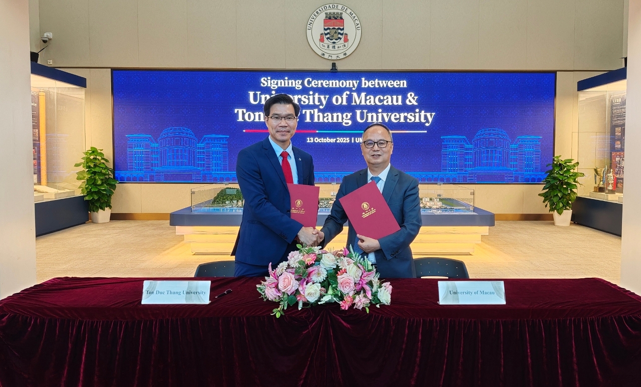 A delegation led by Tran Trong Dao, president of Ton Duc Thang University in Vietnam, visited the University of Macau (UM), and was warmly received by Yonghua Song, rector of UM. During the visit, the two parties signed a memorandum of understanding and a student exchange agreement to promote closer cooperation in areas such as education, research, and talent development.