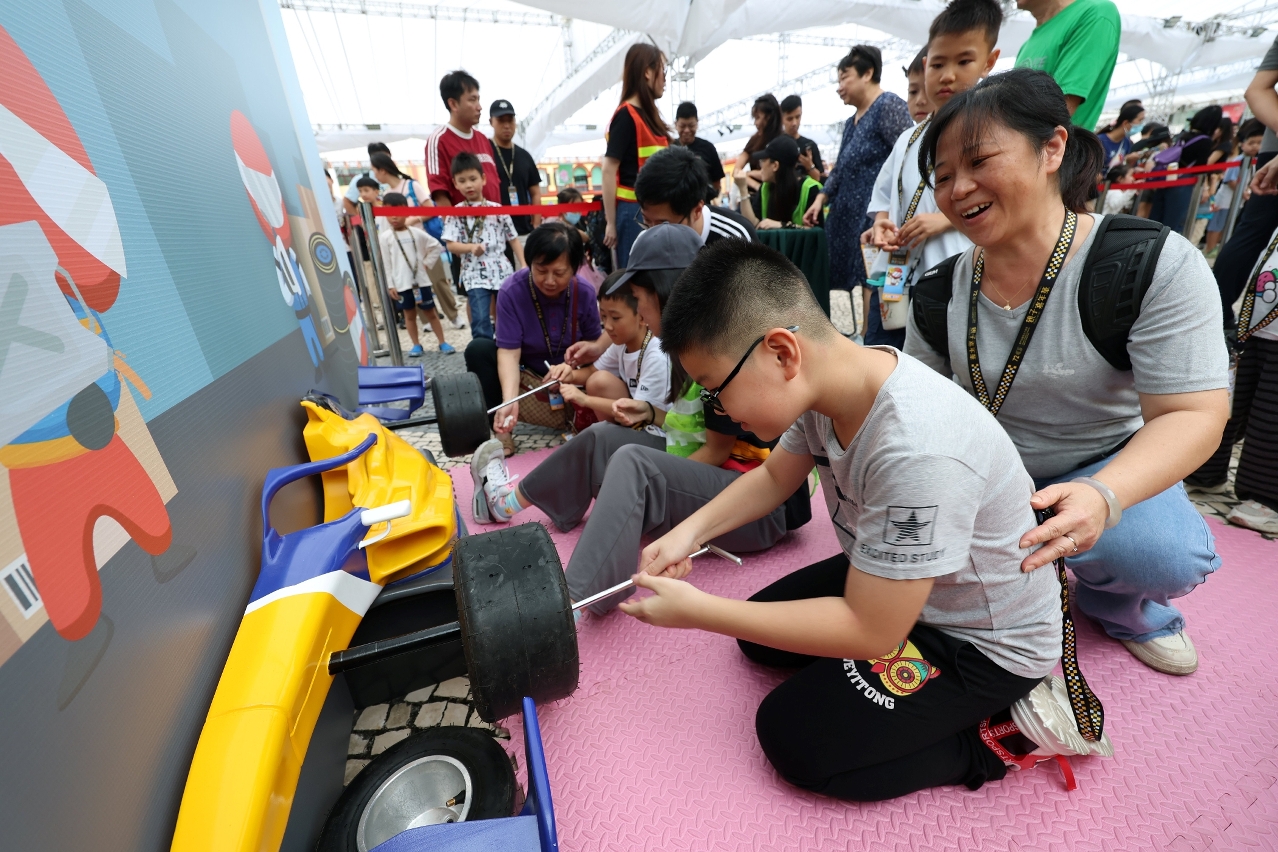 The 72nd Macau Grand Prix-themed carnival at Tap Seac Square features a recreated Guia Circuit and a mini race track, with interactive games catering to the whole family. Children participating in the event can become mini racing drivers and race track workers. Visitors can gain a first-hand understanding of the various tasks performed during the Grand Prix, and learn more about racing activities as well as have the opportunity to obtain Grand Prix-themed souvenirs. Additional elements at the carnival convey the message of enhanced family life.