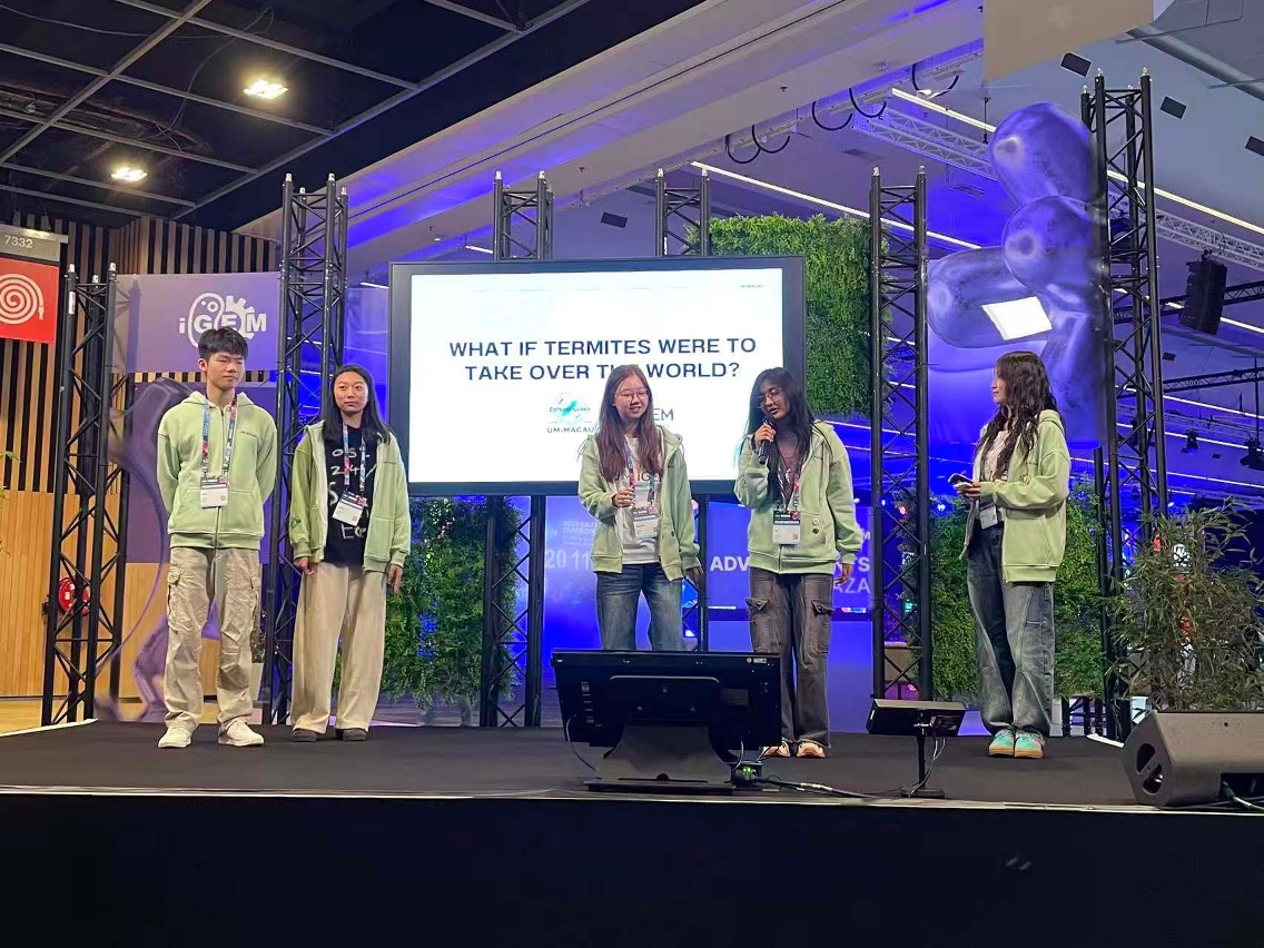 A team of undergraduate students from the Faculty of Health Sciences (FHS) at the University of Macau (UM) has won a gold medal at the 2025 International Genetically Engineered Machine (iGEM) Competition held in Paris. Their award-winning project focuses on an innovative synthetic biology solution for termite control. This is the seventh consecutive year that UM has won an award at iGEM, bringing the total number of gold medals to four.