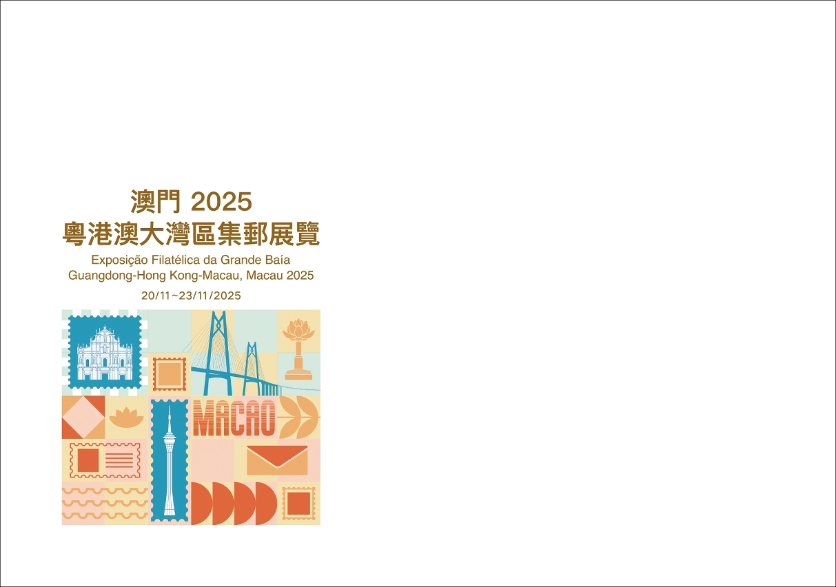To commemorate the Guangdong-Hong Kong-Macao Greater Bay Area Stamp Exhibition, Macao 2025, Macao Post and Telecommunications Bureau announces that a Temporary Post Counter will be set up at the Philatelic Shop of the General Post Office from 10:00 to 17:30 on 20th November 2025, to provide the commemorative postmark cancellation service for the “Guangdong-Hong Kong-Macao Greater Bay Area Stamp Exhibition, Macao 2025”.