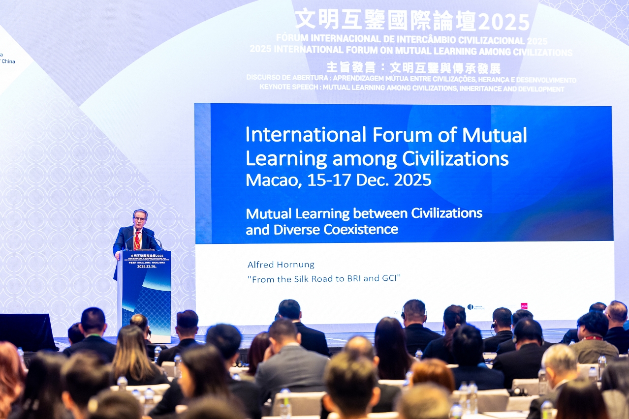 Presented by the Government of the Macao Special Administrative Region, organized by the Cultural Affairs Bureau, and supported by the Chinese Academy of History of the Chinese Academy of Social Sciences, the “2025 International Forum on Mutual Learning among Civilizations” took place in Macao from 16 to 17 December 2025. Themed “Mutual Learning among Civilizations, Inheritance and Development”, the Forum attracted more than 50 representatives from government departments and international organizations as well as renowned experts and scholars worldwide to give over 20 high-quality keynote speeches, and welcomed more than 300 guests from various sectors home and abroad. The Forum established a platform for exchange among highly advanced civilizations, fully reflecting its cross-disciplinary and high-level international communication.