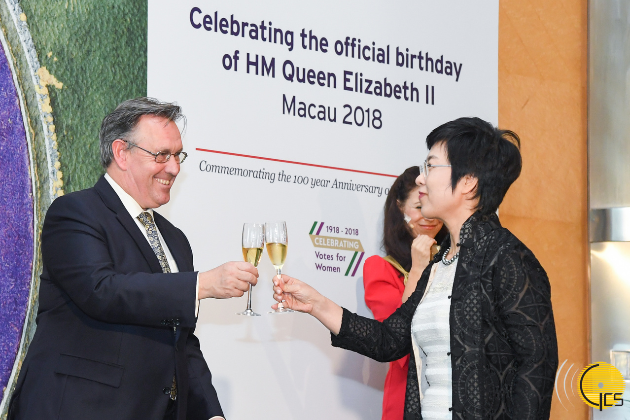 • Secretária para a Administração e Justiça, Sónia Chan, em representação do Chefe do Executivo, na recepção comemorativa do aniversário da Rainha Isabel II do Reino Unido, em Macau.