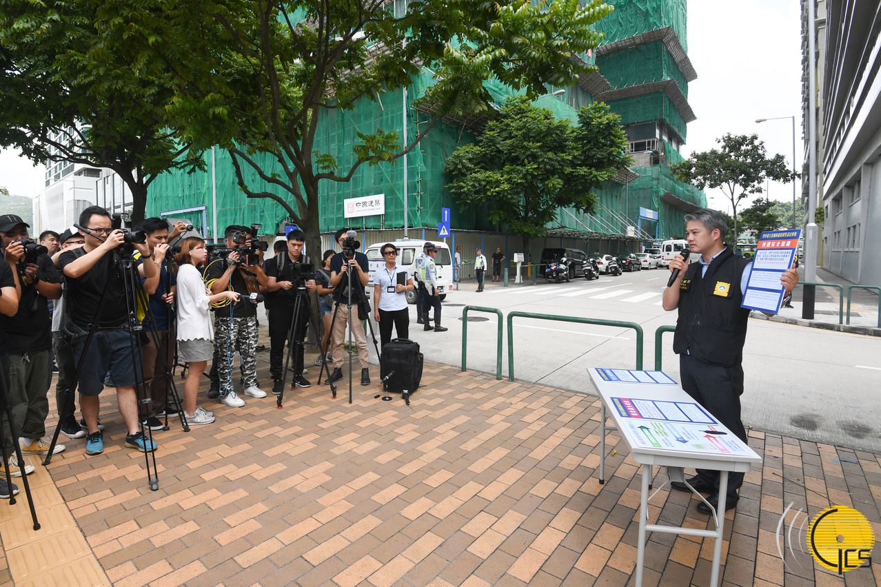 • Representantes da Direcção dos Serviços das Forças de Segurança e da Polícia Judiciária apresentam à comunicação social "sistema de divulgação e aviso nas zonas baixa", no âmbito dos trabalhos de prevenção e redução de catástrofes do Governo da Região Administrativa Especial de Macau (RAEM).