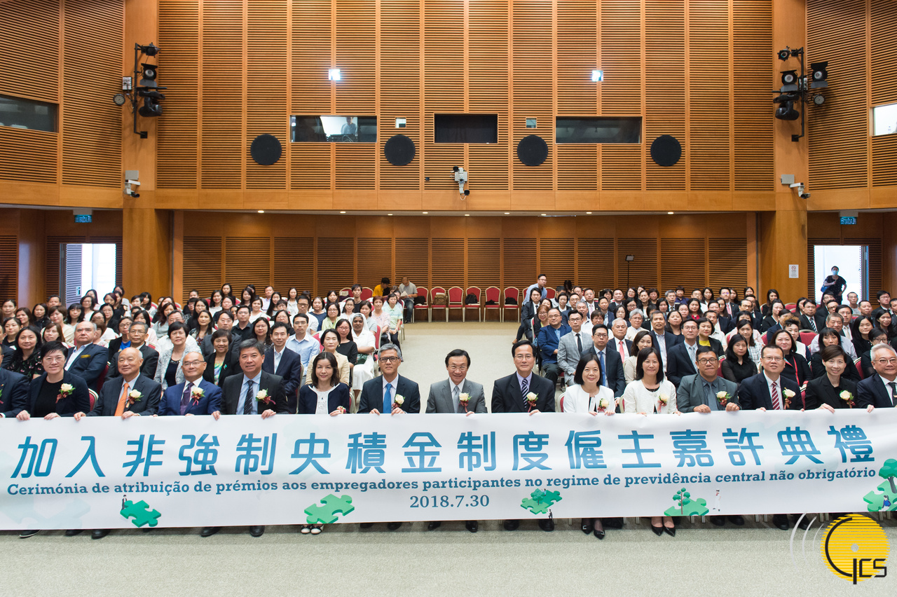 • Secretário para os Assuntos Sociais e Cultura, Alexis Tam, preside à cerimónia de atribuição de prémios aos empregadores participantes no regime de previdência central não obrigatório.