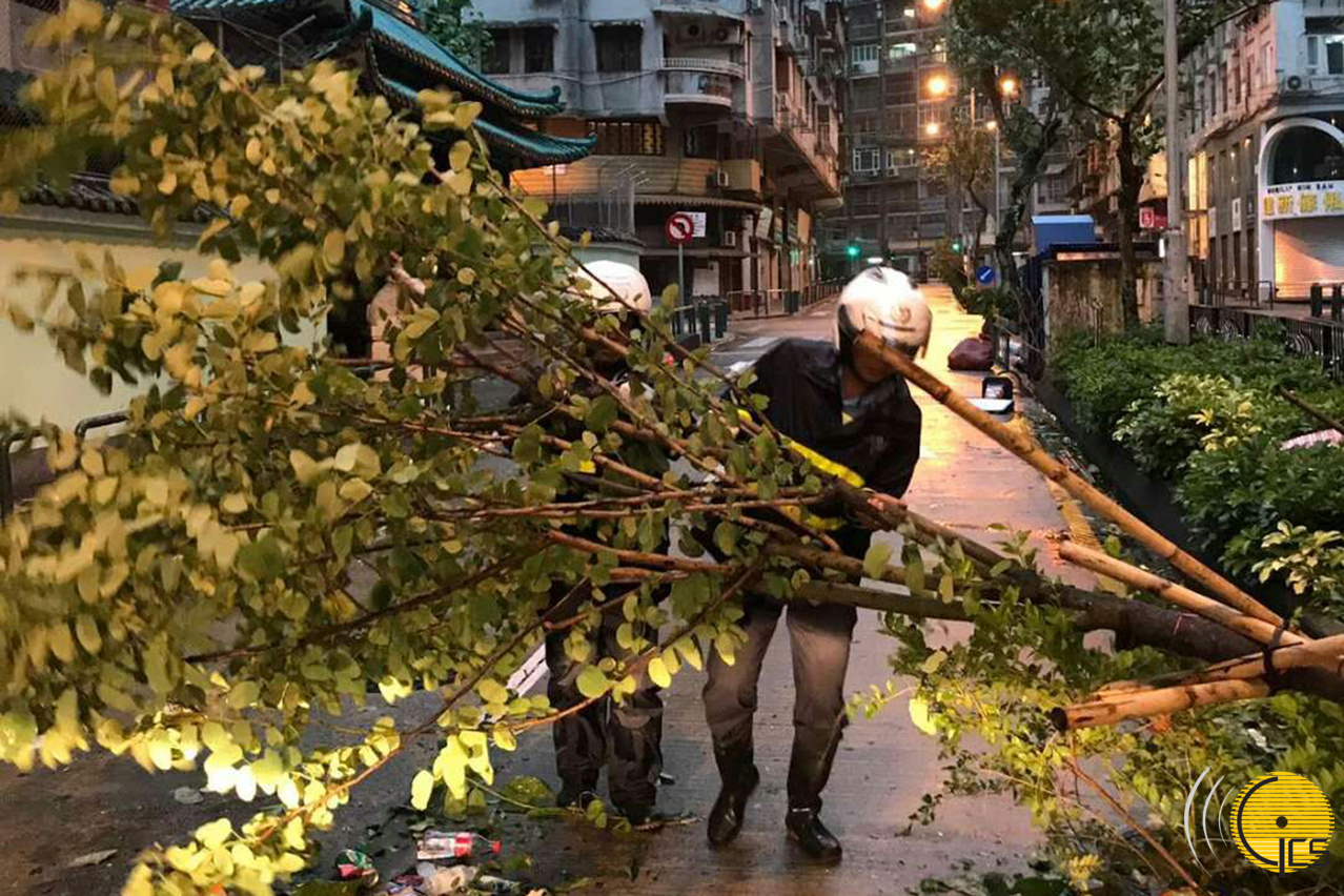 Secretário para a Segurança, Wong Sio Chak, director dos Serviços Meteorológicos e Geofísicos, Raymond Tam, comandante-geral dos Serviços de Polícia Unitários e comandante de acção conjunta da estrutura de protecção civil, Ma Io Kun, gestor do centro de despacho do sistema da direcção e da rede de energia eléctrica da CEM, Charles Leong, presidente do Conselho de Administração do Instituto para os Assuntos Cívicos e Municipais, José Tavares, e director dos Serviços para os Assuntos de Tráfego, Lam Hin San, fazem um balanço sobre os trabalhos da protecçao civil durante a passagem do tufão Mangkhut, e apresentam os que serão executados depois de baixados ou cancelados todos os sinais de tempestade tropical.