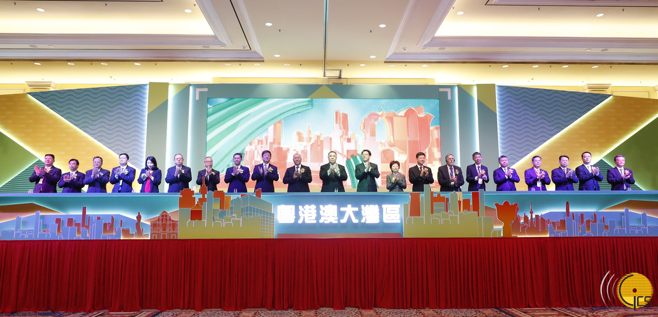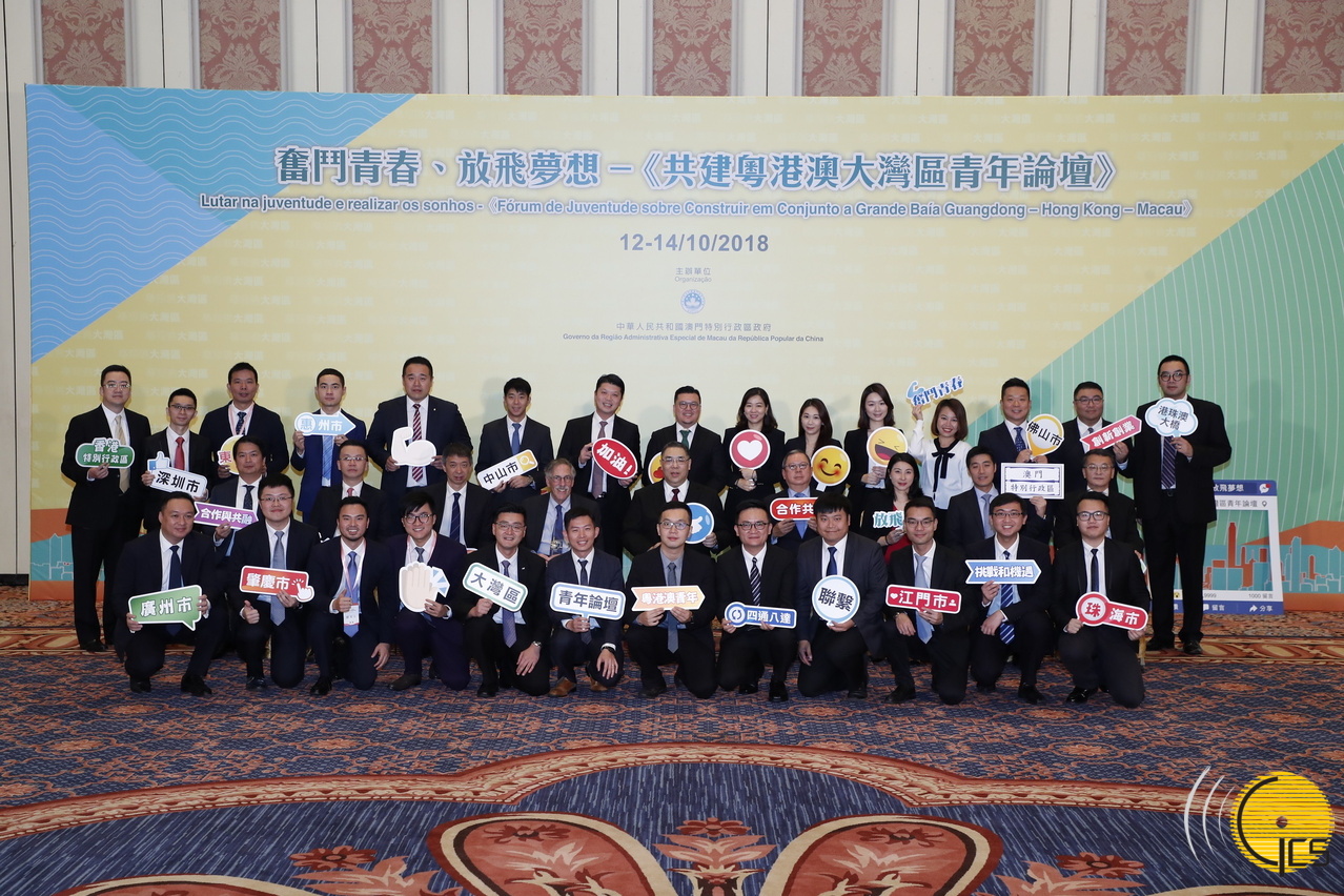 • Chefe do Executivo, Chui Sai On, vice-presidente da CCPPC, Edmund Ho, director do Gabinete para os Assuntos de Hong Kong e Macau do Conselho de Estado, Zhang Xiaoming, convidados, representantes dos governos e de jovens das cidades integradas na Grande Baía Guangdong – Hong Kong – Macau, na cerimónia de abertura do Fórum de Juventude sobre Construir em Conjunto a Grande Baía Guangdong – Hong Kong – Macau: Lutar na juventude e realizar os sonhos.