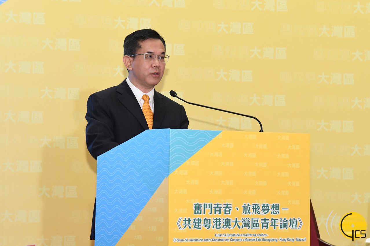 Secretário para a Segurança, Wong Sio Chak, presente no debate paralelo "Juventude, Segurança, Responsabilidade – Cooperação e Integração no contexto da Grande Baía", inserido no Fórum de Juventude sobre Construir em Conjunto a Grande Baía Guangdong-Hong Kong-Macau: Lutar na juventude e realizar os sonhos.