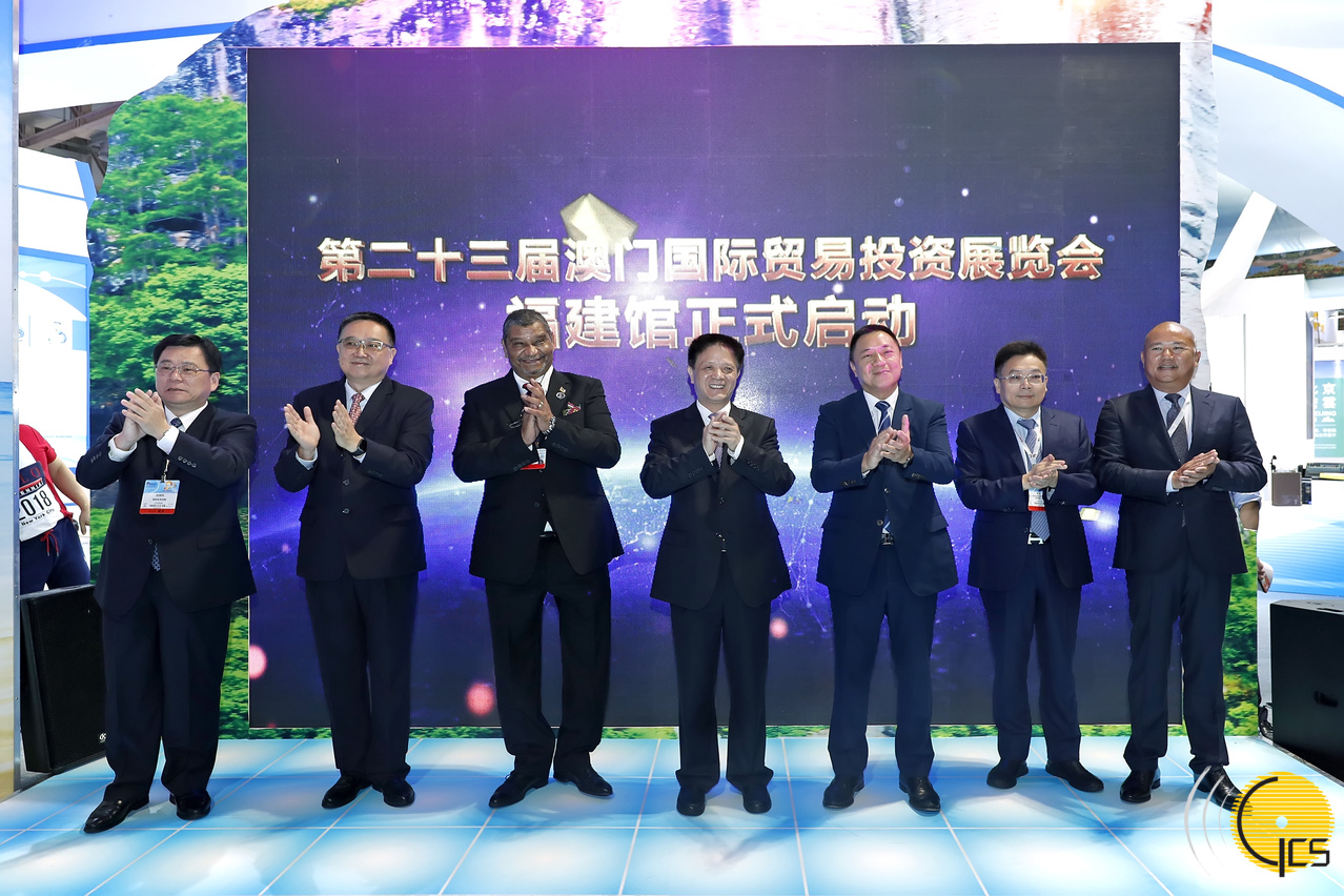 • Secretário para a Economia e Finanças, Lionel Leong, na cerimónia de inauguração do Pavilhão Temático da Província Parceira -Fujian, no âmbito da 23ª Feira Internacional de Macau e da Exposição de Produtos e Serviços dos Países de Língua Portuguesa 2018 (Macau).