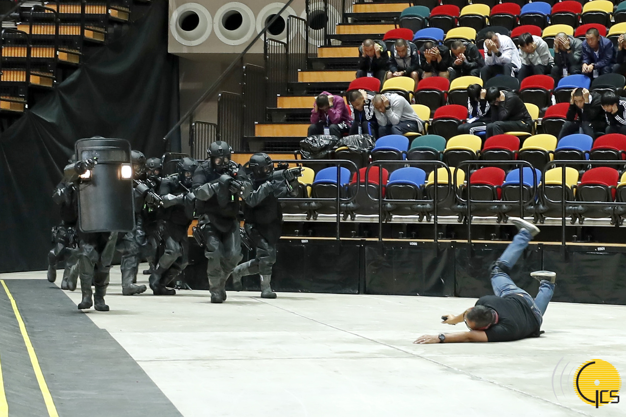 • Exercício de combate ao terrorismo “Cão espirituoso: Enquanto os elementos da equipa de operações especiais procedem a acção de salvamento, os terroristas detonam explosivos na Nave Desportiva dos Jogos da Ásia Oriental de Macau.