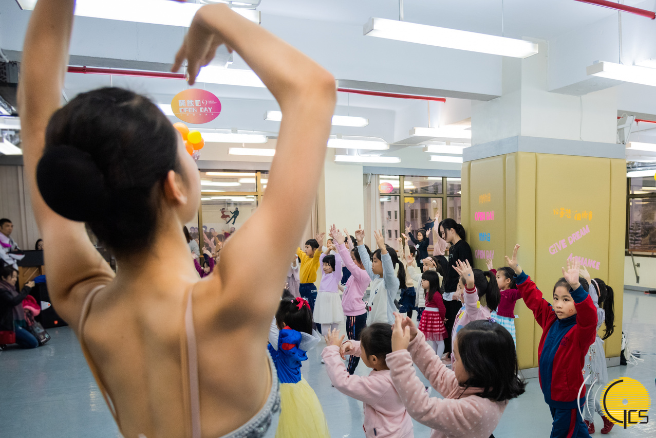 • As crianças experimentam diferentes estilos de dança no Dia Aberto, nomeadamente ballet, dança ocidental, dança chinesa e dança moderna.