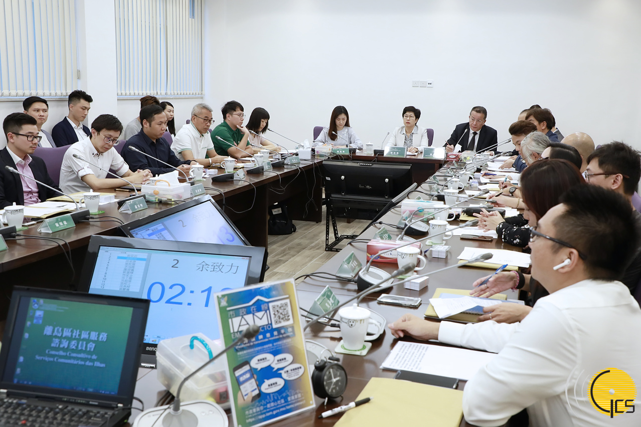 • Secretária para a Administração e Justiça, Sónia Chan, na 3ª reunião ordinária do Conselho Consultivo de Serviços Comunitários das Ilhas em 2019.