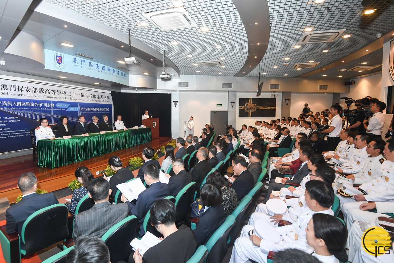 • Secretário para a Segurança, Wong Sio Chak, no seminário sobre divergências jurídicas e cooperação do policiamento na Grande Baía, no âmbito da série de actividades do 31.º aniversário da Escola Superior das Forças de Segurança de Macau