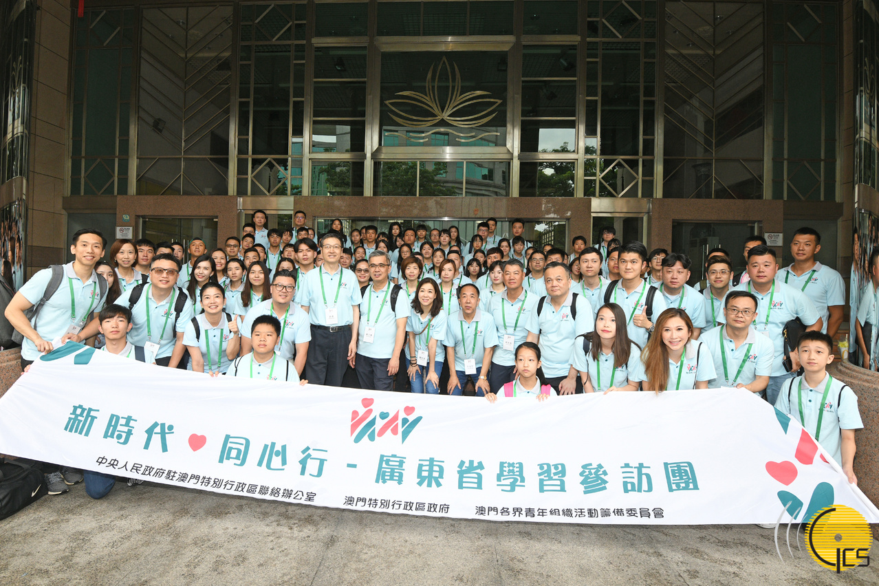 • Secretário para a Segurança e chefe da delegação de visita e aprendizagem «Caminhar juntos na Nova Era» , no Fórum de Macau com os membros da delegação, antes da sua partida.