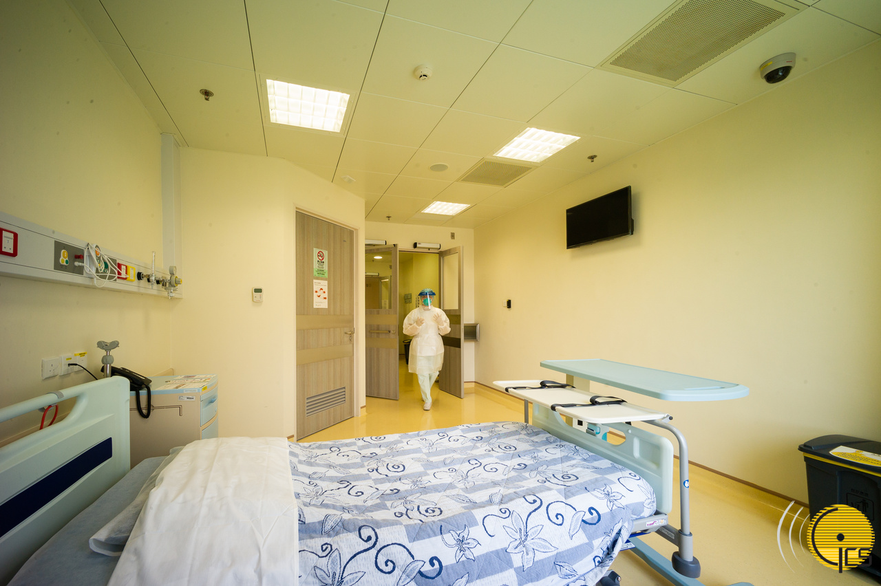 • O Centro Clínico de Saúde Pública faculta 60 enfermarias de isolamento com pressão negativa e dispõe de portas automáticas, com dupla pressão negativa, controlando rigorosamente a direcção do ar no interior das enfermarias.