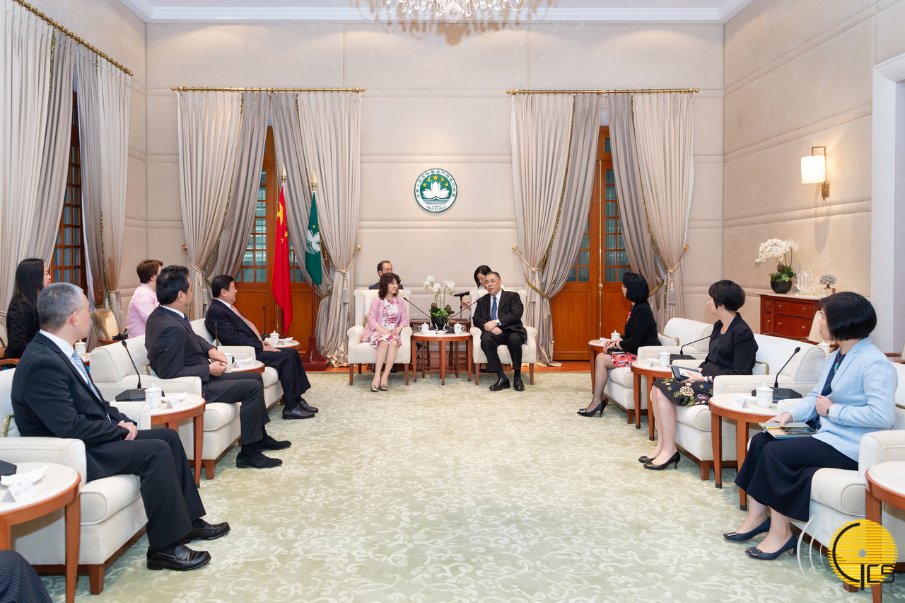Chefe do Executivo, Chui Sai On, recebe em audiência, a delegação liderada pela membro da Câmara dos Conselheiros, ministra do estado para a revitalização regional, reforma legislativa e igualdade de género do Japão, Satsuki Katayama.