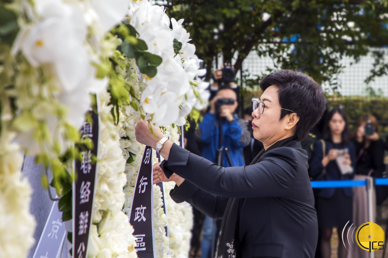 • Chefe do Executivo interina, Sónia Chan, na cerimónia em memória das vítimas do Massacre de Nanjing , organizada pelo Governo da Região Administrativa Especial de Macau (RAEM).