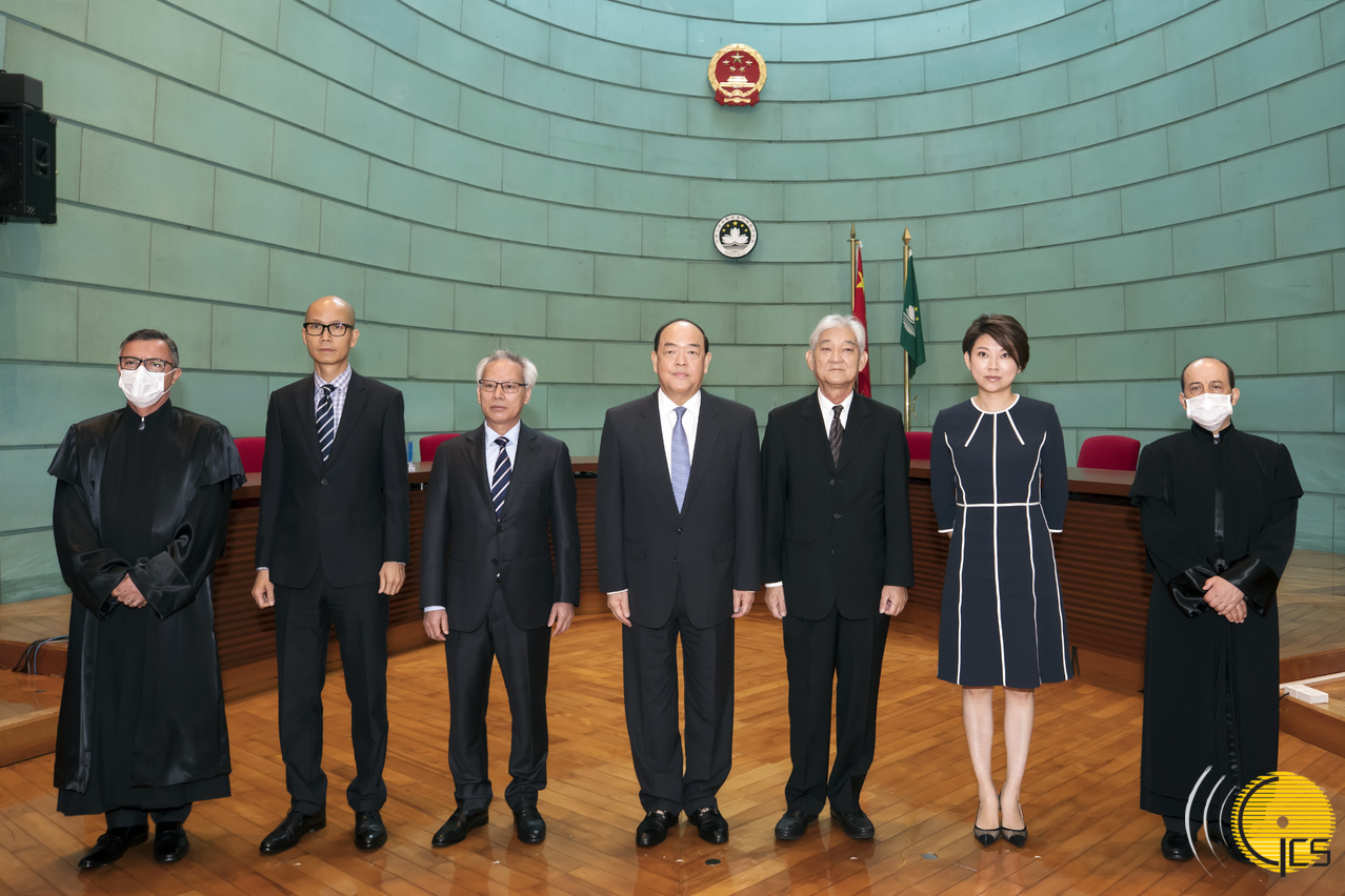 • Chefe do Executivo, Ho Iat Seng, na cerimónia de tomada de posse do juiz do Tribunal de Segunda Instância, Rui Carlos dos Santos Pereira Ribeiro, e do juiz presidente do Tribunal Colectivo dos Tribunais de Primeira Instância, Jerónimo Alberto Gonçalves Santos.