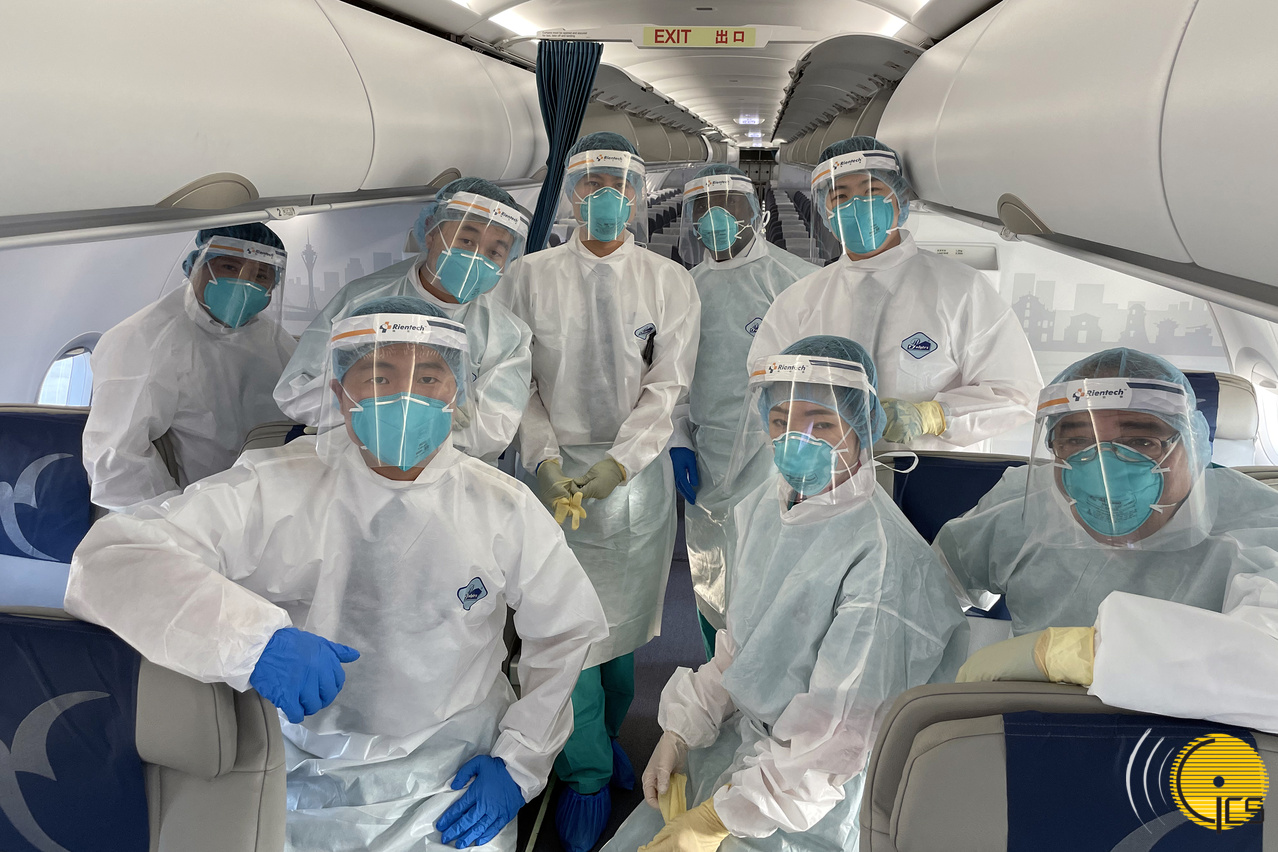 • A tripulação usa equipamentos de protecção individual em todo o processo e adopta medidas de segurança adequadas, para minimizar o risco de infecção cruzada. (Fotografia providenciada pela Air Macau)