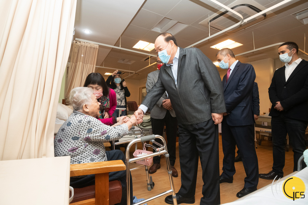 • Chefe do Executivo, Ho Iat Seng, cumprimenta e apresenta votos de felicidade aos idosos, durante a visita a um lar de idosos.