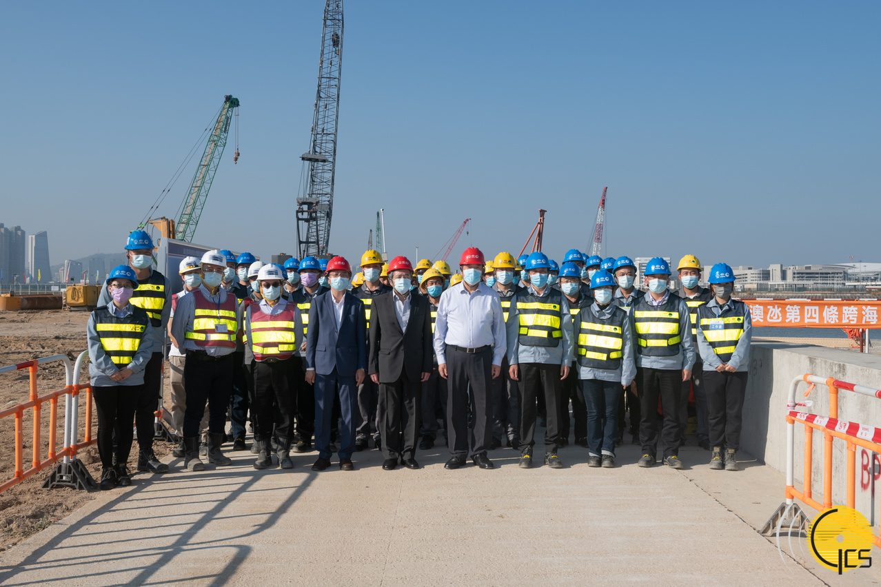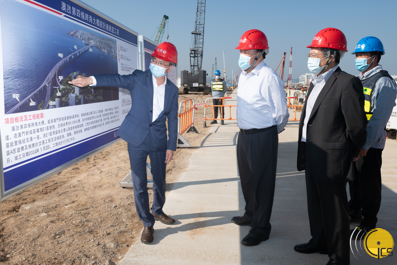 • Chefe do Executivo, Ho Iat Seng, visita estaleiro para se inteirar das várias fases do projecto, durante a qual ouviu a breve apresentação do ponto de situação da construção da quarta ponte Macau - Taipa.