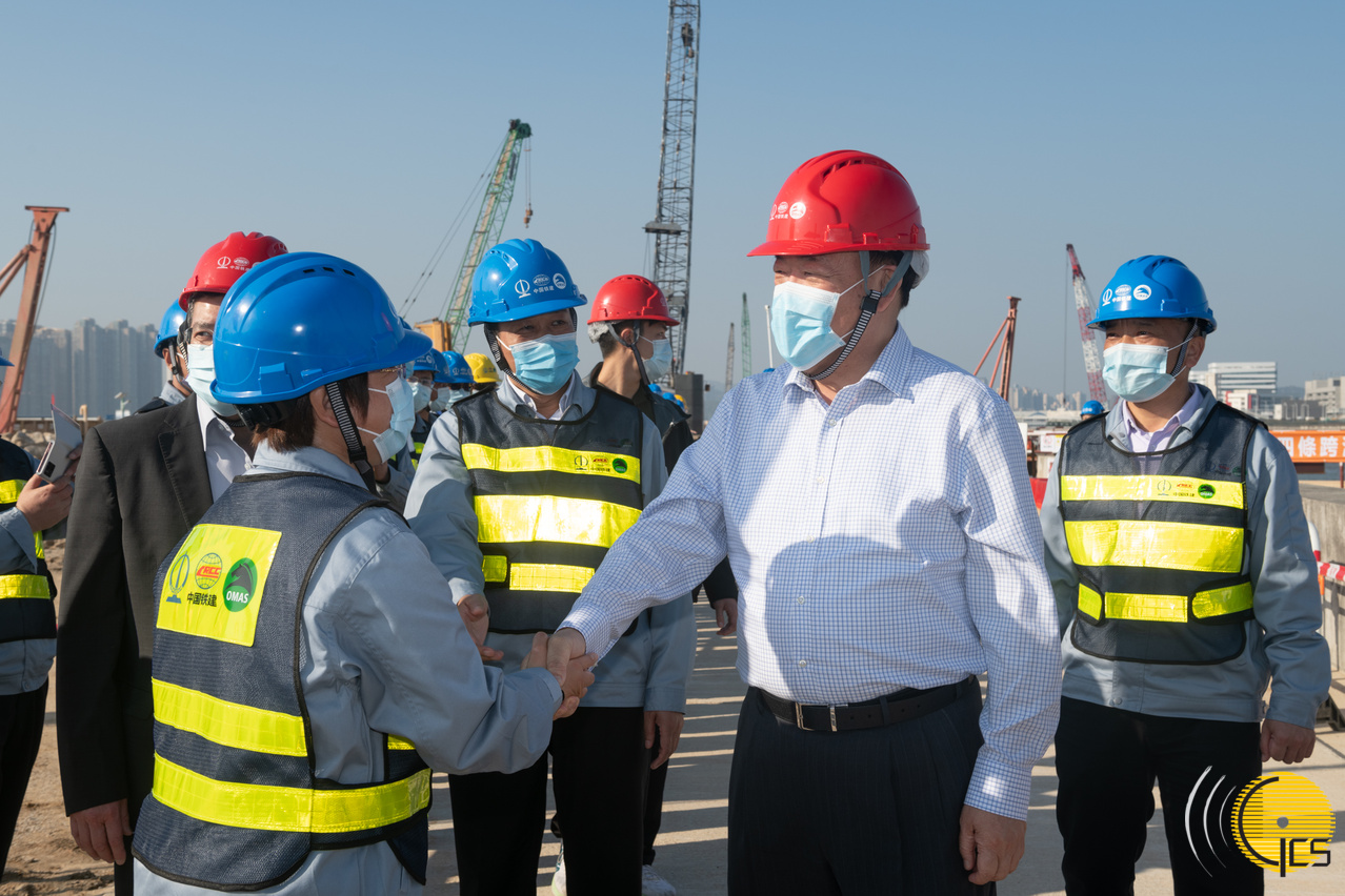 • Chefe do Executivo, Ho Iat Seng, cumprimenta trabalhadores no estaleiro do edifício da administração do complexo hospitalar das Ilhas.