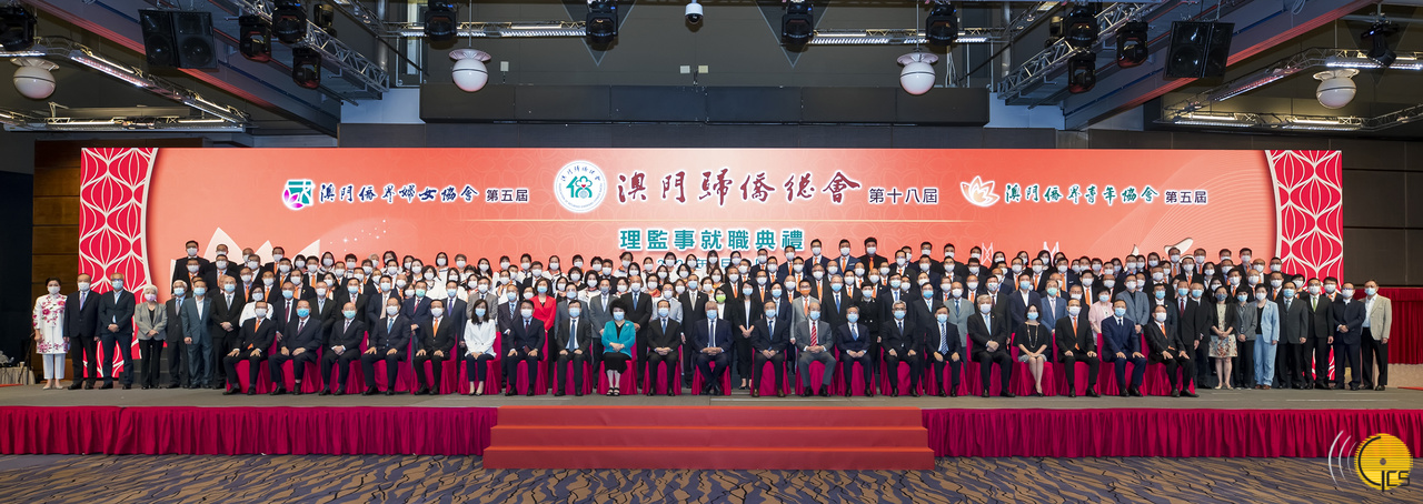 • Secretário para a Economia e Finanças, Lei Wai Nong, secretário para a Segurança, Wong Sio Chak, e secretária para os Assuntos Sociais e Cultura, Ao Ieong U, na cerimónia de tomada de posse dos novos corpos dirigentes da Associação Geral dos Chineses Ultramarinos de Macau, da Associação das Chinesas Ultramarinas de Macau e da Associação de Juventude Chineses Ultramarinos Retornados de Macau.