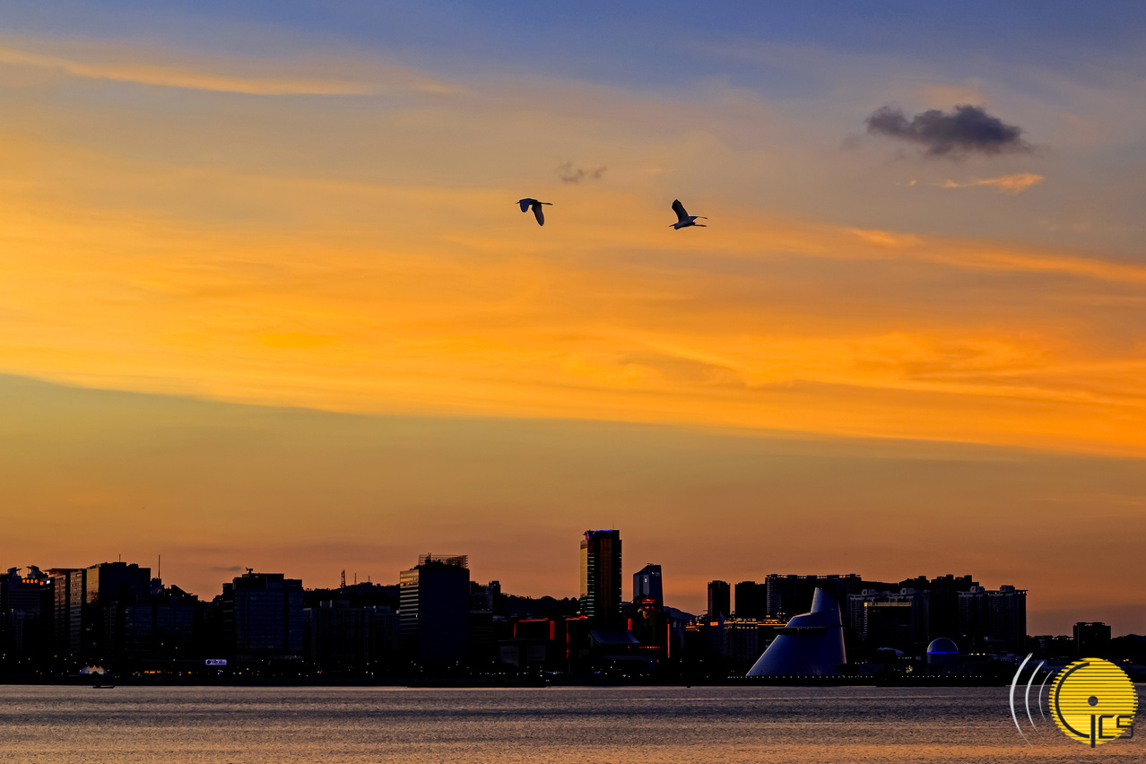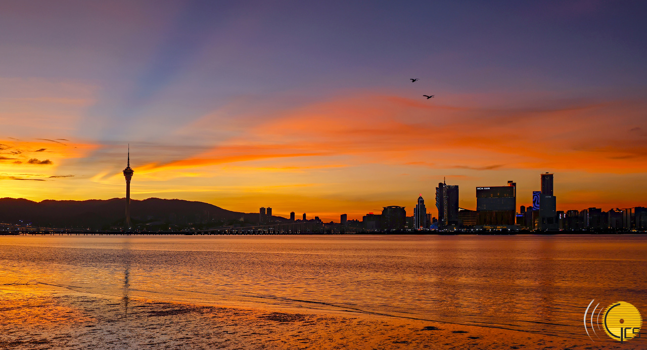 • No verão, o pôr-do-sol em Macau dá-nos a magia de ver de um crepúsculo de outro mundo com nuvens coloridas.