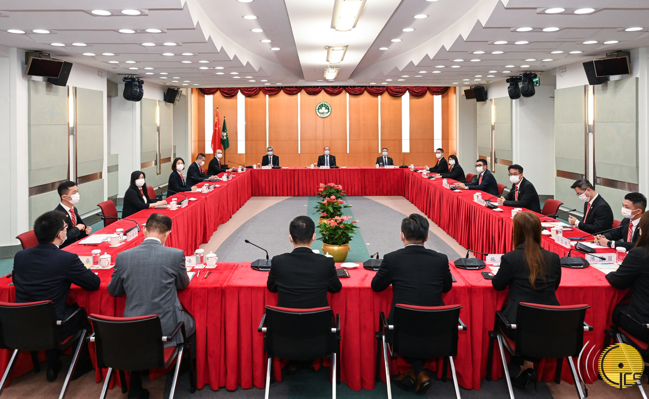 • Chefe do Executivo, Ho Iat Seng, reúne-se com os representantes da Aliança de Povo de Instituição de Macau para auscultar as opiniões e sugestões no âmbito da elaboração das Linhas de Acção Governativa para o ano financeiro de 2023.