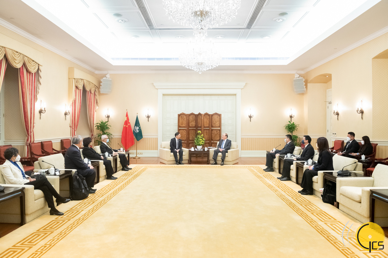 Chefe do Executivo, Ho Iat Seng, reúne-se com o vice-presidente da Cruz Vermelha da China, Wang Ke, e comitiva, na Sede do Governo.