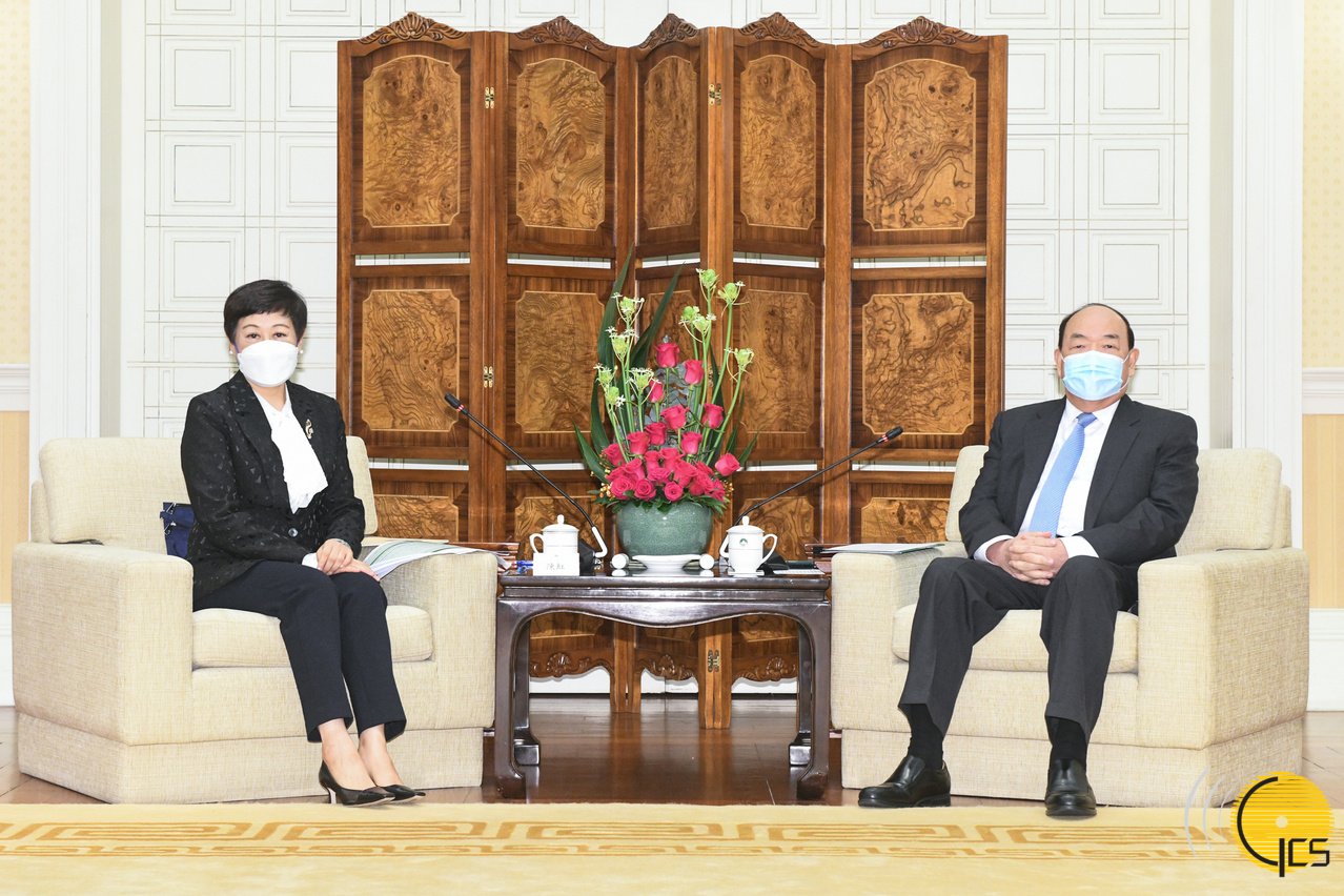 Encontro entre o Chefe do Executivo, Ho Iat Seng, e a presidente da Associação de Educação de Macau, Chan Hong.