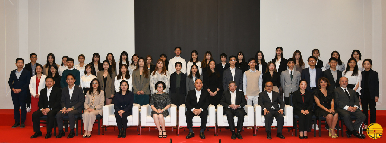 • Chefe do Executivo, Ho Iat Seng, e a esposa com os estudantes de Macau que frequentam cursos superiores em Portugal.