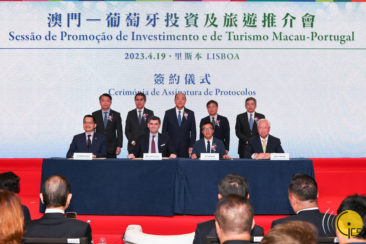 • Chefe do Executivo, Ho Iat Seng, testemunha a assinatura do " Memorando de cooperação entre a AICEP Portugal Global - Agência para o Investimento e Comércio Externo de Portugal e o Instituto de Promoção do Comércio e do Investimento de Macau" e do " Acordo de Cooperação Empresarial entre a Associação de Comerciantes e Industriais Luso-Chinesa de Portugal e a Associação Comercial de Macau", na "Sessão de Promoção de Investimento e de Turismo Macau-Portugal".