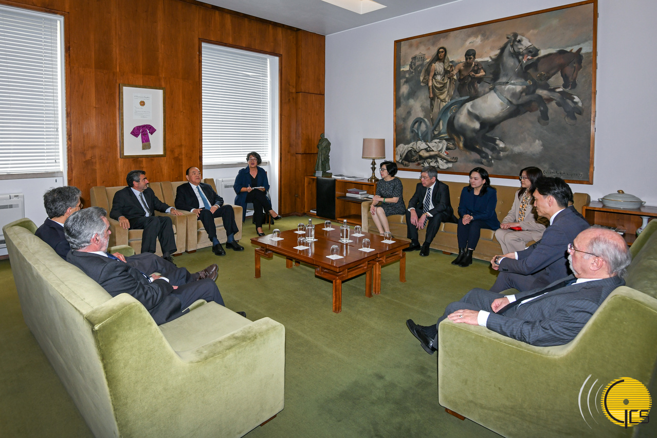 • Chefe do Executivo, Ho Iat Seng, e o reitor da Universidade de Lisboa, Luís Ferreira, e outros responsáveis , no âmbito da visita à universidade de Lisboa.
