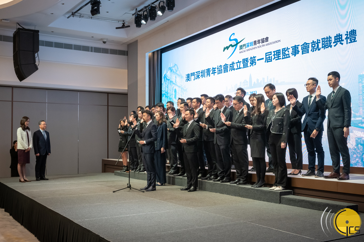 Secretária para os Assuntos Sociais e Cultura, Ao Ieong U, em nome do Chefe do Executivo, presente na cerimónia de estabelecimento da Associação de Jovens de Shenzhen de Macau e da tomada de posse dos membros dos corpos dirigentes da Associação.