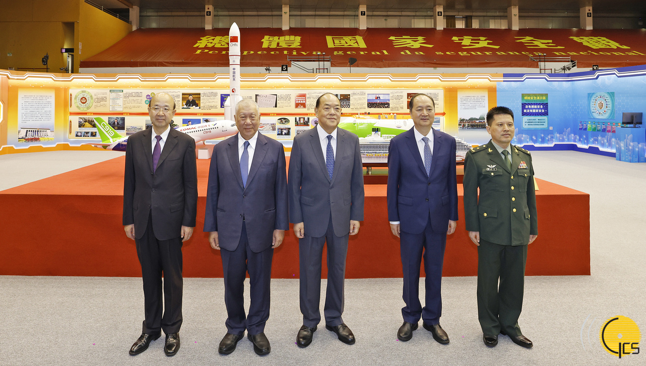 • Chefe do Executivo, Ho Iat Seng, e os convidados principais na cerimónia de inauguração da «Exposição sobre a Educação da Segurança Nacional» de 2024.